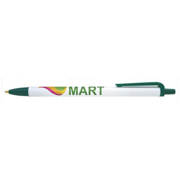 Good Value Green with Black Ink Contender Pen with a corproate brand is a cost effective way to showcase your brand or organization for the entire use of the pen. The practical design of this pen with a white barrel and contrasting trim means your name or logo will be the star. Great for giveaways, new clients, or general daily use. Order today.The minimum order for this product is 500 pieces.