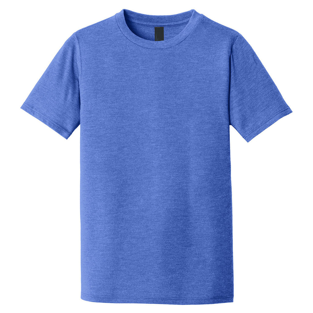 With a logo attached on the custom printed District Youth Royal Frost Perfect Tri Crew Tee, you create a powerful marketing tool for your team or business. Soft and lightweight, the multi-purpose tee is a great way to sponsor a youth softball team. The tee also works fashionably well as an only layer for attending school. Polyester, cotton, and rayon blend together seamlessly to produce a highly durable shirt that lasts for years to come.Highlights