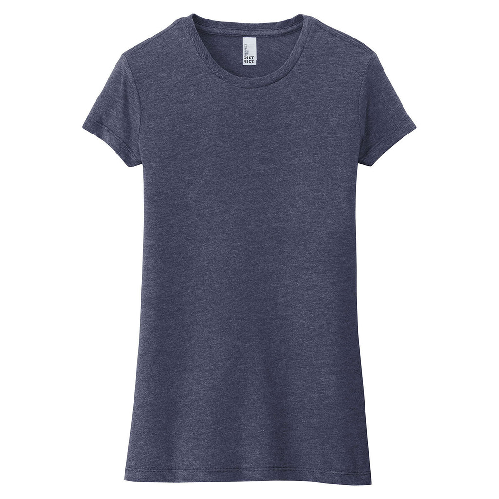 Designed with a form fitting fabric, the custom printed District Women's Navy Frost Fitted Perfect Tri Tee always ensures you put your best fashion foot forward. Polyester and rayon combine to create a fabric that resists the types of rips and tears that send other styles of tees to the fashion sidelines. With cotton added to provide smooth comfort, you have discovered corporate apparel that covers all the fashion bases. Add your corporate logo to connect with professional peers at corporate recreational events. Hand out the tee to employees for apparel to wear at industry functions.Highlights