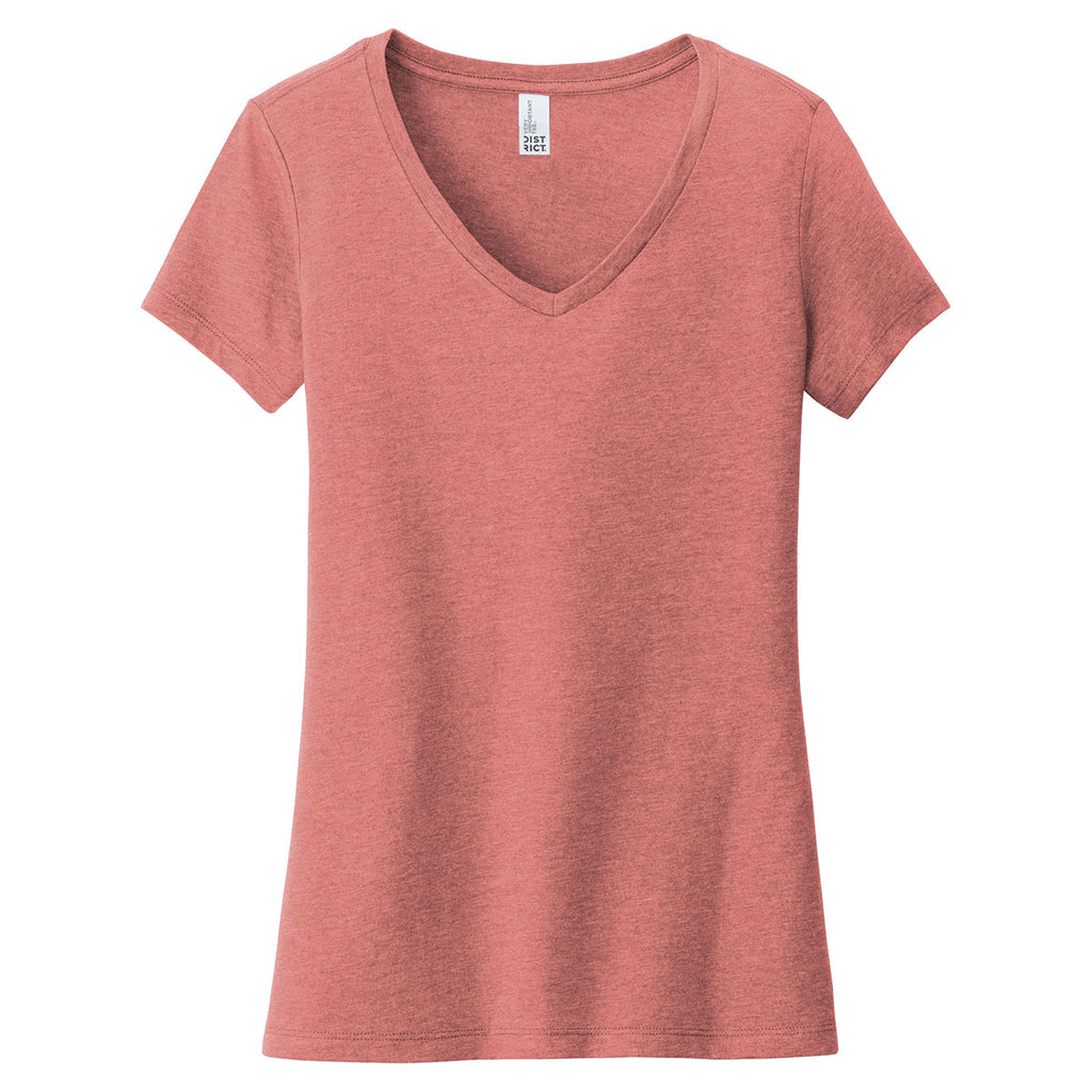 You do not need to wear a tux to feel very important, when you order the decorated District Women's Blush Frost Very Important Tee V-Neck. The fashionable short sleeve shirt features shoulder to shoulder taping that presents a professional appearance for job candidates attending recruiting events. Attach a custom logo to raise the bar for marketing products and services at industry trade shows. Super soft 100% ring spun combed cotton resists rips and tears to give you go to corporate apparel for years to come. The slightly slimmer body and shorter sleeves make the tee v-neck perfect for active outdoor enthusiasts.Highlights