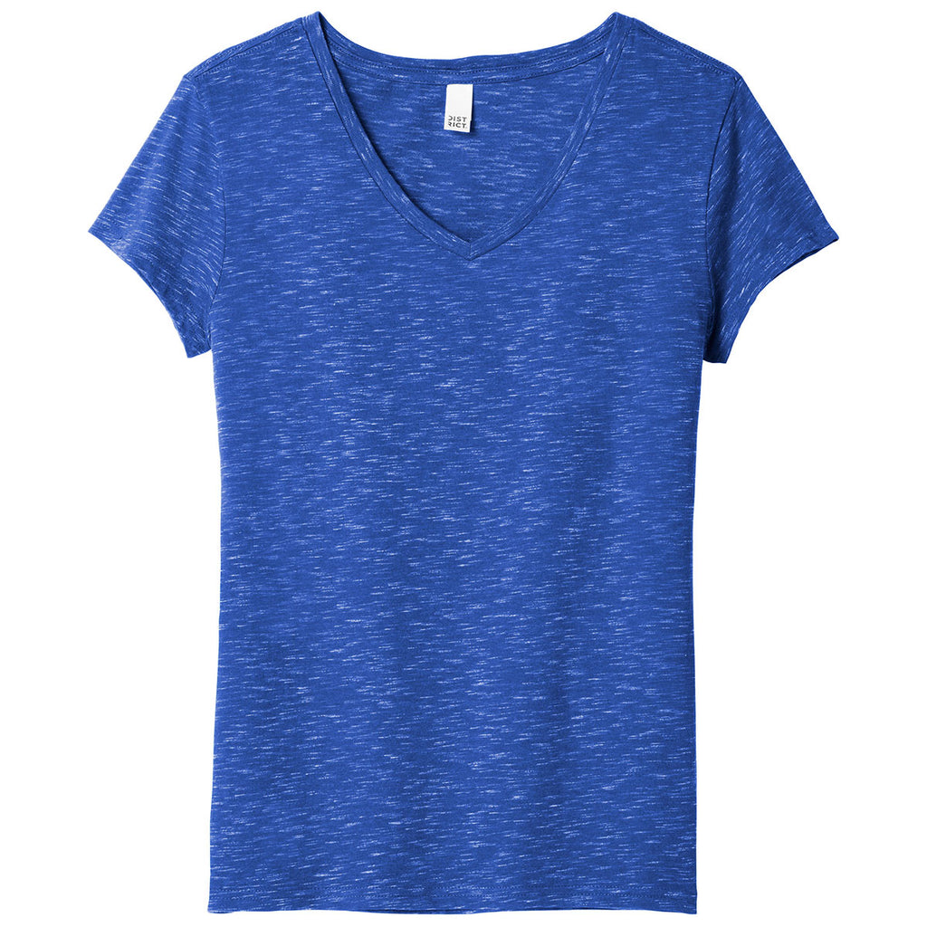 With a relaxed fit that blends in seamlessly at company casual social events, the screen printed District Women's Deep Royal Medal V-Neck Tee is an excellent addition to new employee gift bags. Shoulder to shoulder taping produces a structured look that withstands the pounding delivered by active lifestyles. Enjoy the super smooth feel of 90% ring spun cotton, as well as polyester fibers that bind together to resist rips and tears. Wear the tee as an only layer at a picnic and as the first layer of a cool weather fashion ensemble. Attach your corporate logo for getting more exposure at industry trade shows.Corresponding Men's Style: District Men's Deep Royal Medal Tee