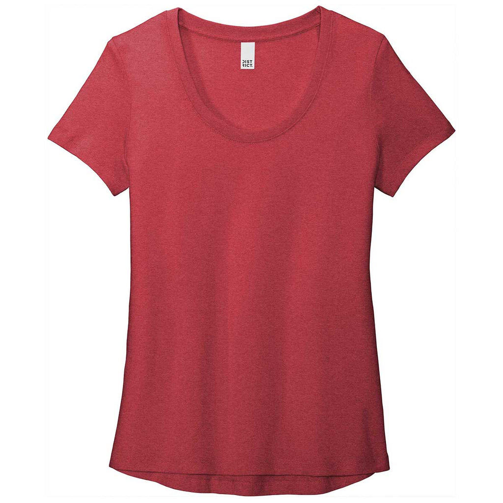 Be comfortable all day with a heat transfer District Women's Heathered Red Flex Scoop Neck Tee. With just a hint of stretch this traditional fitting scoopneck is a combination of combed ring spun cotton, poly, and spandex with a rib knit neck and slight high-low rounded hem. Add a company logo to offer these at trade shows or as employee gifts or add a corporate logo to use as employee uniforms or at team events. This tee is far from basic with the all day comfort that we all want and deserve. A variety of sizes and colors are available to choose from to meet your design needs.Corresponding Men's Style: District Men's Heathered Red Flex Tee