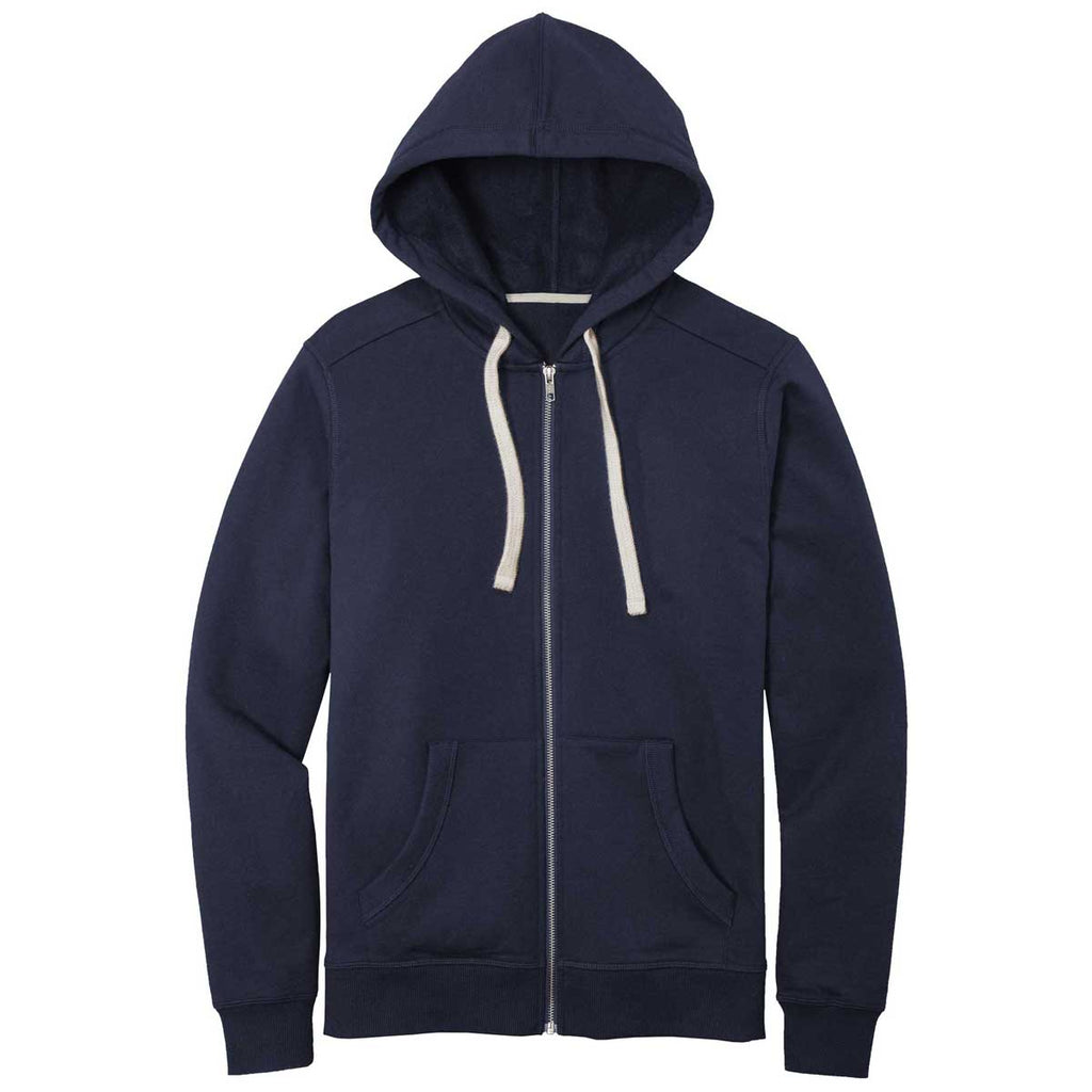 Chill in a screen print District Men's True Navy Re-Fleece Full-Zip Hoodie made of recycled cotton, polyester, and rayon to create a straightforward, highly sustainable look that is great to wear and good for the environment. The midweight full-zip hoodie is perfect for printing and can be easily layered with a tank, tee, or long sleeved shirt to create a custom look. Add a company logo to use as employee gifts that are unique and functional. The cover-stitch details demonstrate quality and the simple design means nearly everyone can enjoy the look. Place an order today to have these ready when the weather starts to change.Corresponding Women's Style: District Women's True Navy Re-Fleece Full-Zip Hoodie