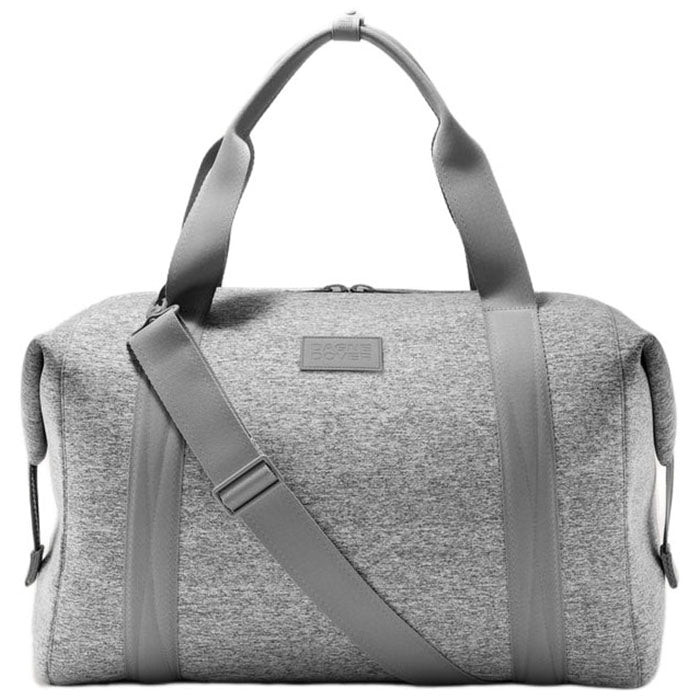 Extra long weekend? You need an extra large weekender. Whether you're taking a planned vacay or extending your Sunday into Tuesday, our Dagne Dover Heather Grey Landon Neoprene Carryall Bag - Extra Large has the most room of all its smaller siblings. Lightweight and chic on the outside, organized on the inside, it's ready for wherever you want to take it. It has a dust bag for shoes, a leash for keys, and a pouch for any other goodies you can't travel without. And what's a weekender without a removable crossbody strap and two sneaky zipper pockets that keep your unmentionables from being, well, mentioned? And if you're thirsty, there's a place for your bottle (of water or wine).