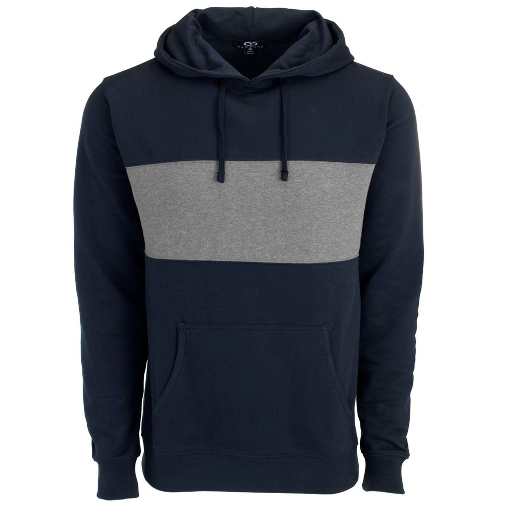 Vantage Men's Deep Navy Premium Cotton Blocked Fleece Pullover Hoodie