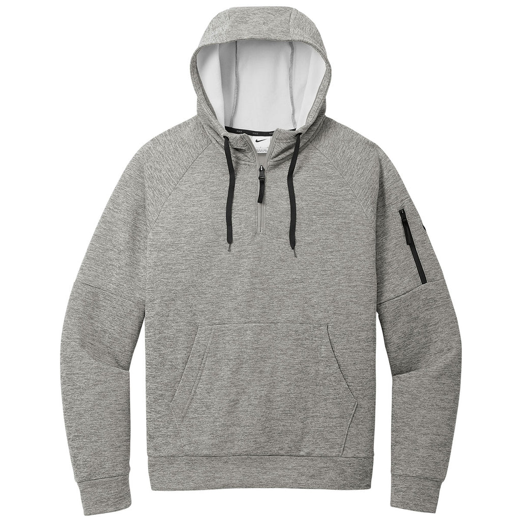 Nike Men's Dark Grey Heather Therma-FIT Pocket 1/4-Zip Fleece Hoodie