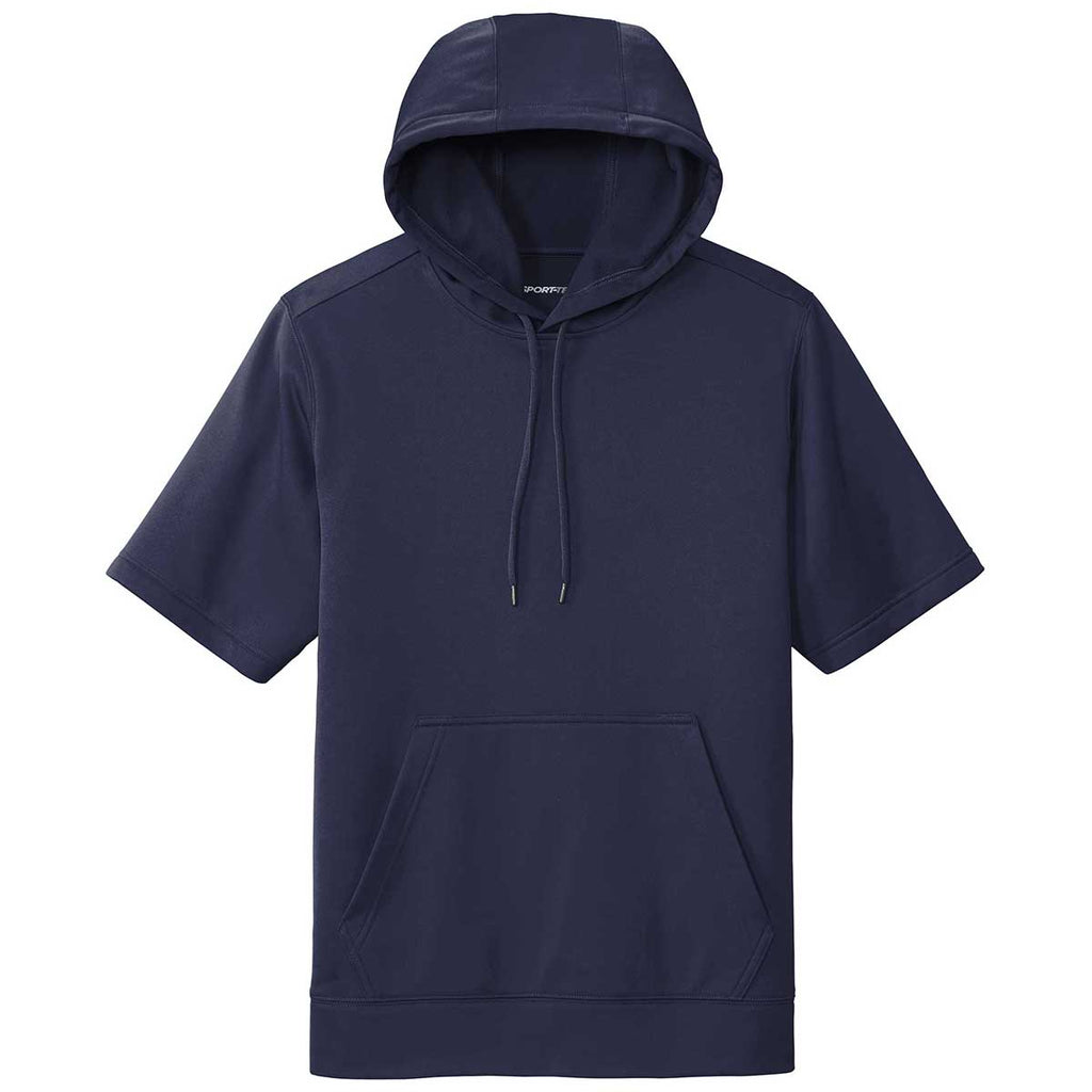 Sport-Tek Men's Navy Sport-Wick Fleece Short Sleeve Pullover Hoodie