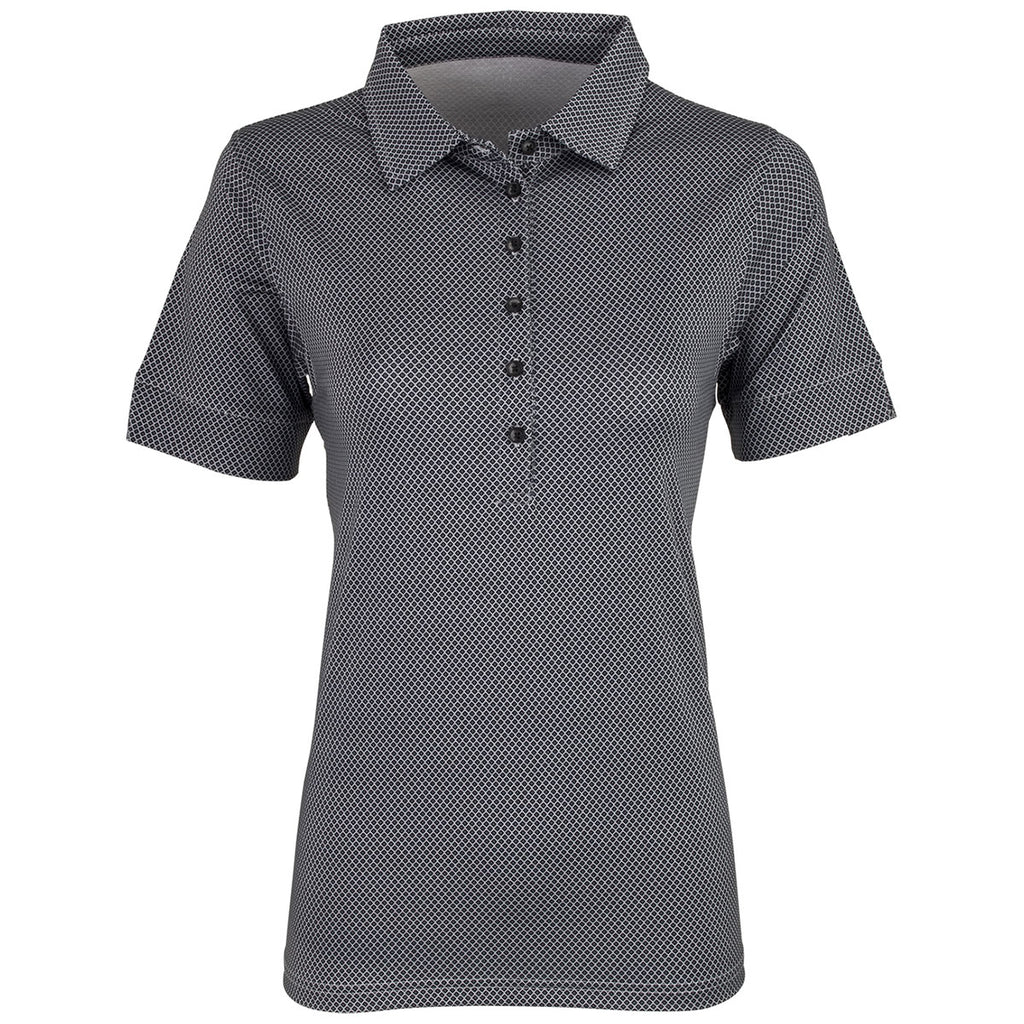Design a custom embroidery for the Vansport Women's Black/Grey Pro Eagle Polo to create an easy-to-wear look that is ready for the day. The short sleeve polo is lightweight, anti-microbial, and offers UV protection with an all-over diamond print. Hit the putting green, the back nine, or work in this versatile polo.