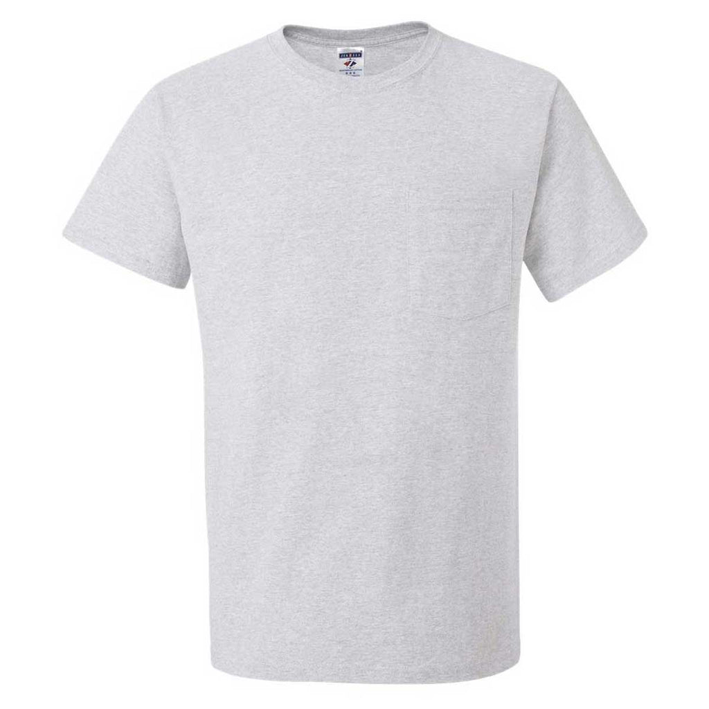 Create a screen print of your design for the Jerzees Men's Ash Dri-Power 50/50 T-Shirt with a Pocket. A wonderful basic tee with a pocket, the cotton polyester blend is lightweight and offers advanced moisture management performance that is great when working or playing outdoors. The soft fabric is a great canvas for your screen print. Use as employee apparel for part of a uniform or just add to the wardrobe of family and friends with a custom gift. A versatile piece that can easily go from home to work as part of layers and back again.Highlights