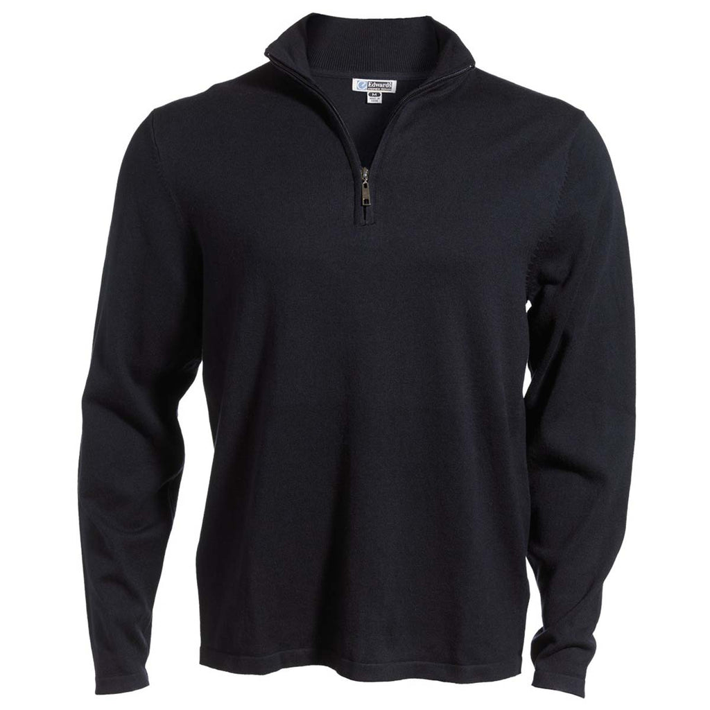 A unique take on a custom cardigan is found in the Edwards Men's Navy Fine Gauge Quarter Zip Sweater. Made of a cotton, acrylic, and nylon blend this quarter zip sweater offers comfort and versatility in a look that can go from the office to a backyard BBQ with ease. Add a company logo or corporate employee to use these pullover quarter zip sweaters as employee apparel or as part of corporate uniforms. The impeccable style and rib knit collar will be an instant favorite in all types of weather. These sweaters can easily be layered and worn alone to offer the look you need and want.Highlights