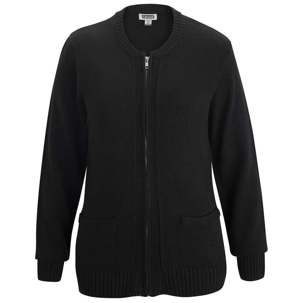 Create a custom embroidery for the Edwards Men's Black Jersey Knit Acrylic Full Zip Cardigan for an overall look that is ready for fun. The full zip cardigan will keep you warm whether watching a sporting event or commuting to work. Midweight and made of 100% acrylic, the cardigan is a must-have for the stylish in your life. Place an order today.Highlights