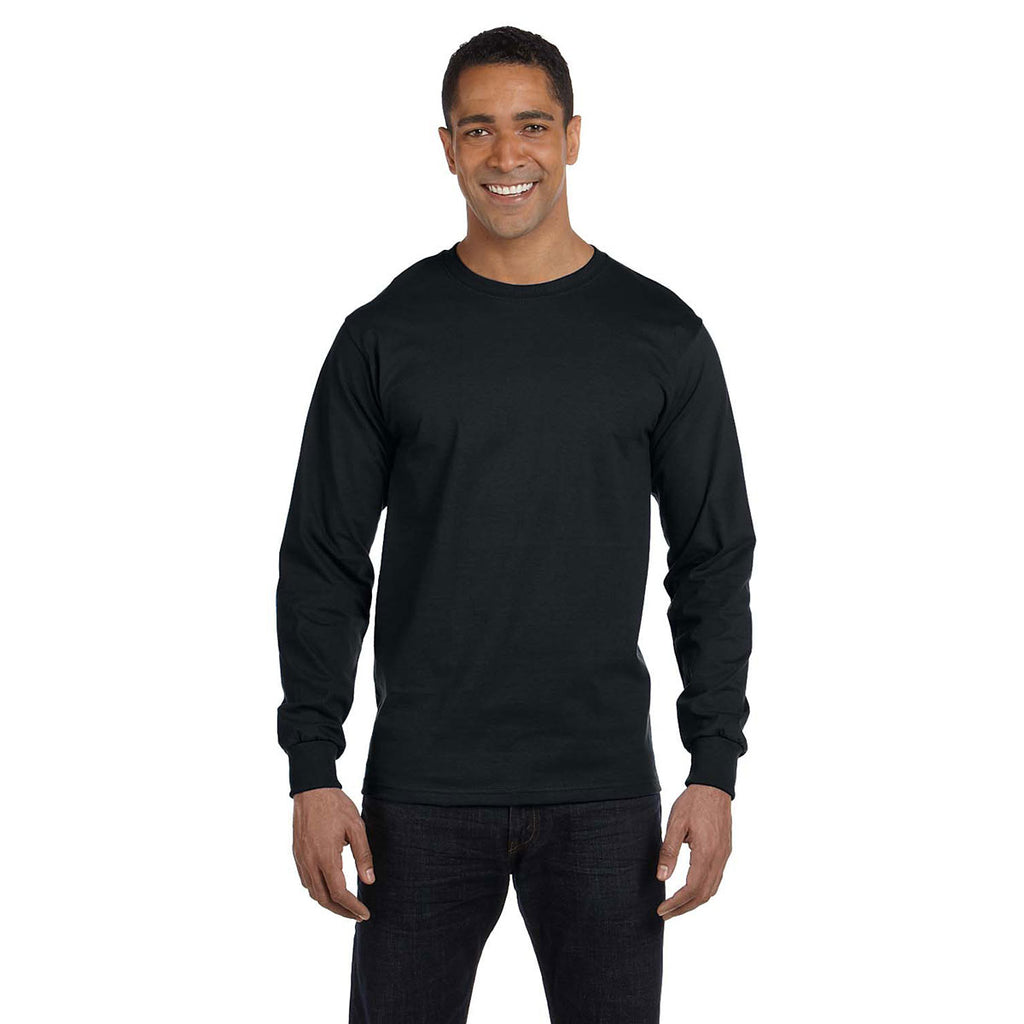 Add a screen print to this Hanes Men's Black 6.1 oz Long-Sleeve Beefy-T to create custom employee apparel that will be an instant hit. Available in 23 different colors, one will be sure to compliment your custom logo. Created from 100% ringspun cotton with double-needle stitching throughout, the lay flat collar and tag-free label will make this a comfortable choice for everything from a trade show to golf events. Great for layering or wearing alone, this custom long sleeve tee will meet all your needs, whether they are focused around your company, a team, or just to beef up your wardrobe.Highlights