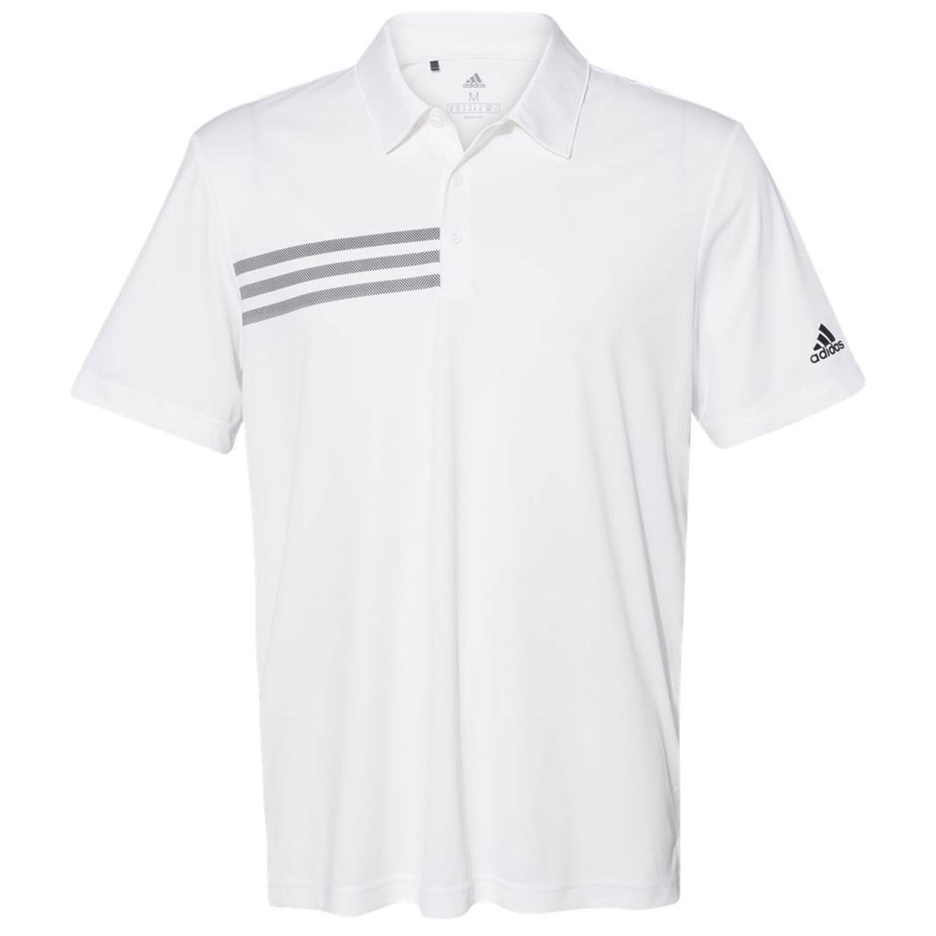 Enjoy a unique custom look with an embroidery Adidas Men's White/Black 3 Stripe Chest Polo. Perfect as corporate apparel when paired with a jacket or vest, this polo is made of 100% recycled polyester jersey. This means you can look great and help the environment in the traditionally styled polo with hydrophilic finish and a UPF rating of 50+. The simple design is enhanced with three stripes on the right side and a open hem with three button placket. Add a custom logo to use these polos as employee apparel that makes a statement or as employee gifts that will be an instant hit.