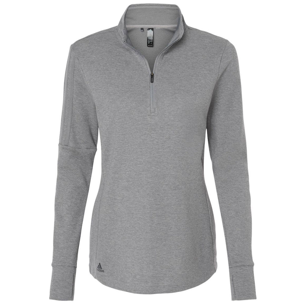 adidas Women's Grey Three Melance 3-Stripes Quarter Zip Pullover
