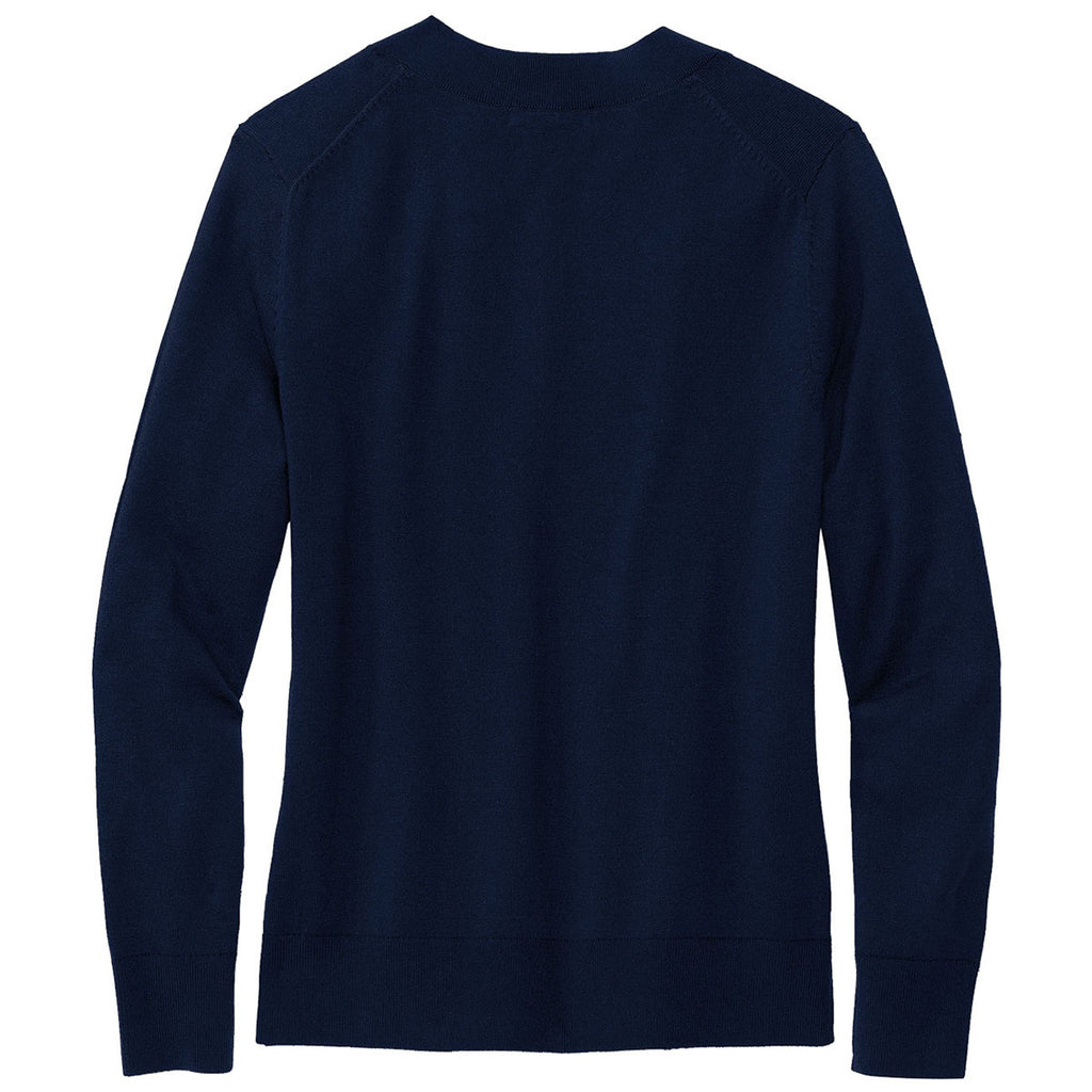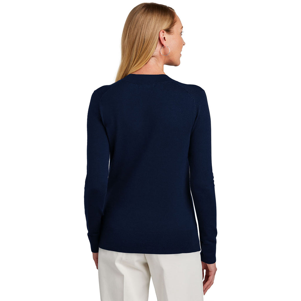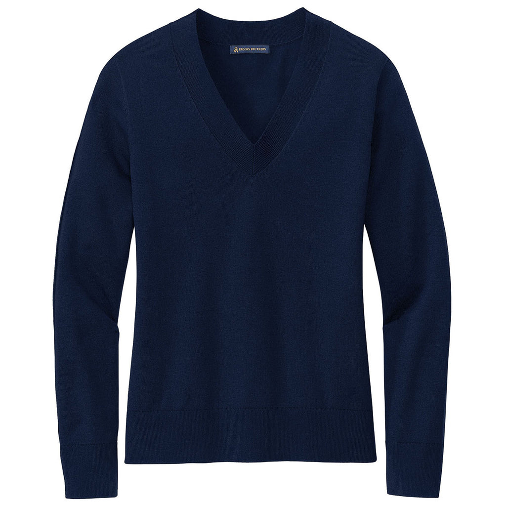 Brooks Brothers Women's Navy Blazer Cotton Stretch V-Neck Sweater with custom embroidery for a classical crisp corporate piece. Stand out at any tradeshow and at the office in this high-quality sweater. Style and layer to add a personal touch to create multiple different outfits. Reach out and snag this multi-purpose piece.