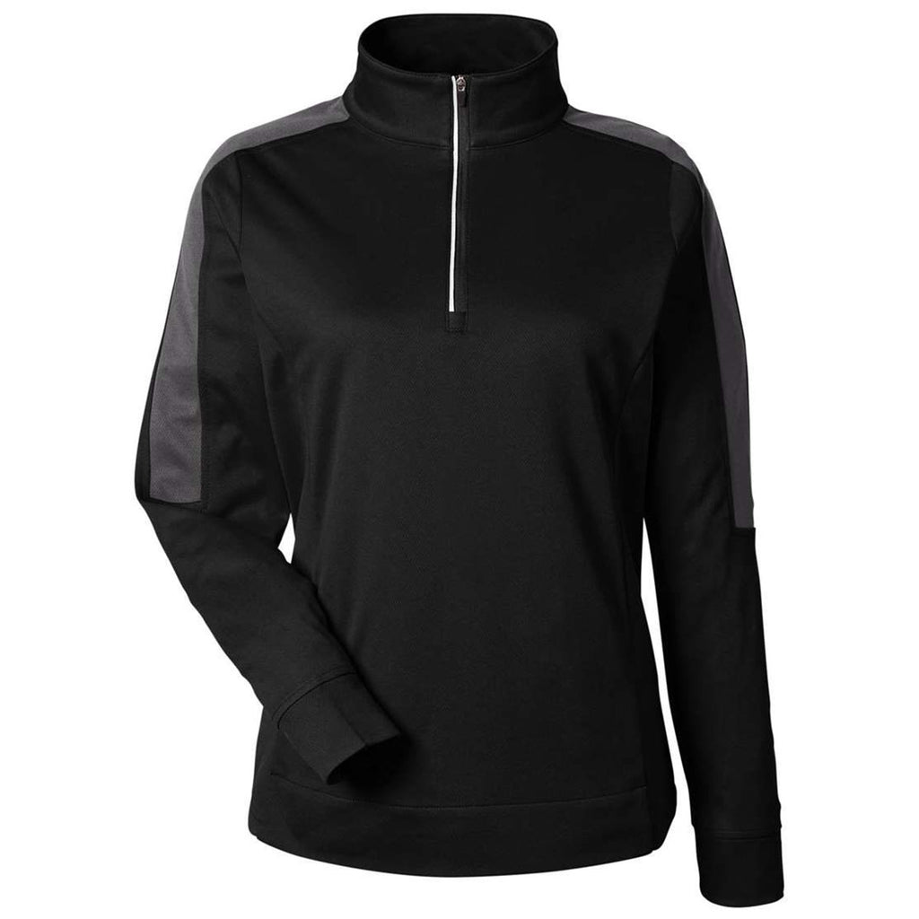 Core 365 Women's Black/Carbon Market Snag Protect Mesh Colorblock Quarter-Zip Pullover