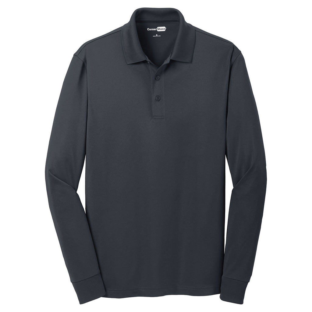 CornerStone Men's Charcoal Select Snag-Proof Long Sleeve Polo