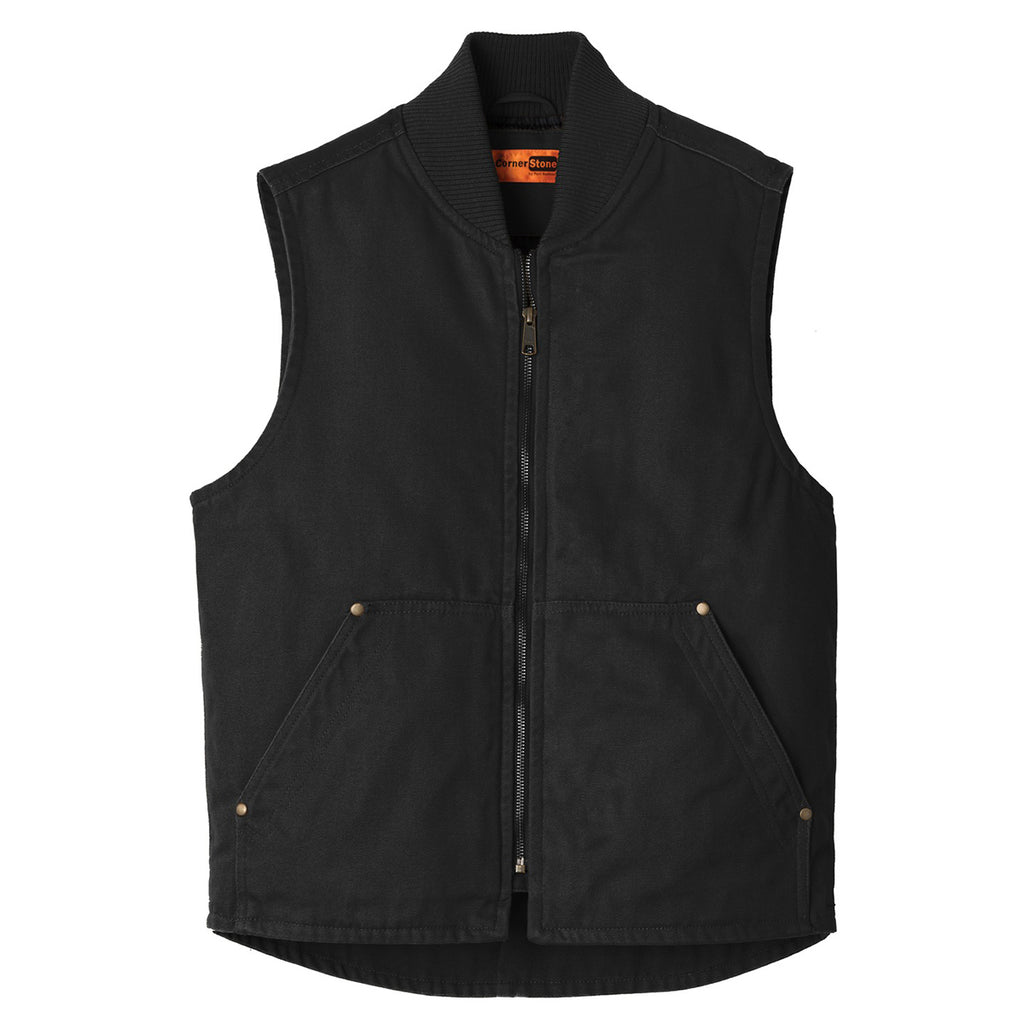 Designed to tackle the toughest outdoor projects, the logoed CornerStone Men's Black Washed Duck Cloth Vest incudes enzyme-washed fabric that presents a clean look while still being functional. One-hundred percent cotton duck cloth feels smooth against the body to ensure long lasting comfort. Poly-fill insulation within the polyester taffeta lining boosts the interior warmth to make the vest perfect for camping and hunting trips. Use the interior pocket with a hook and loop closure to store your most needed accessories. Attach your company logo on the large imprint area to spread the word about your business at the next outdoor corporate event.Highlights