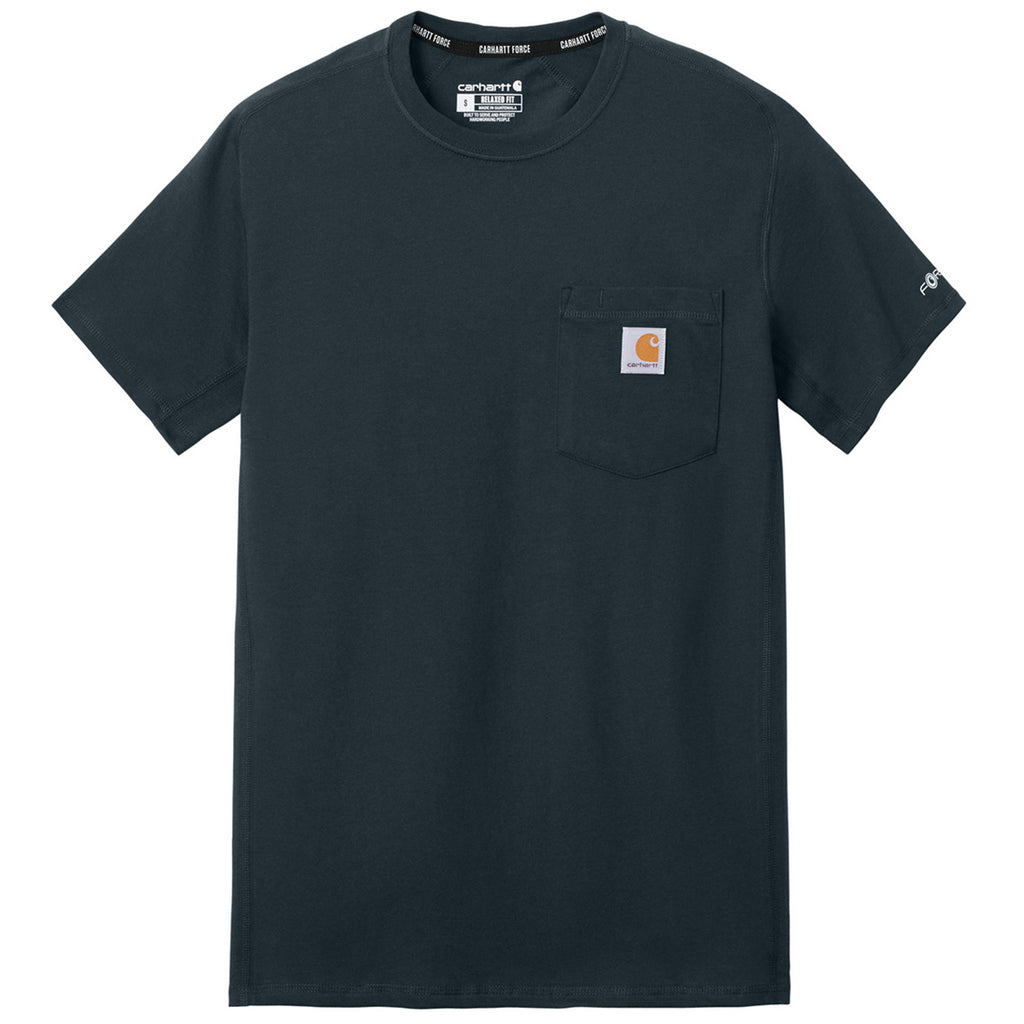 Be tough and comfortable in a custom Carhartt Men's Navy Force Short Sleeve Pocket T-Shirt. This simple tee is made for those who work and play hard. The chest pocket is great for small tools and other needed items as you work outdoors, camp, hunt, fish, or whatever you choose. Place an order right away; these will go fast.This product can only ship within the United States and Canada.