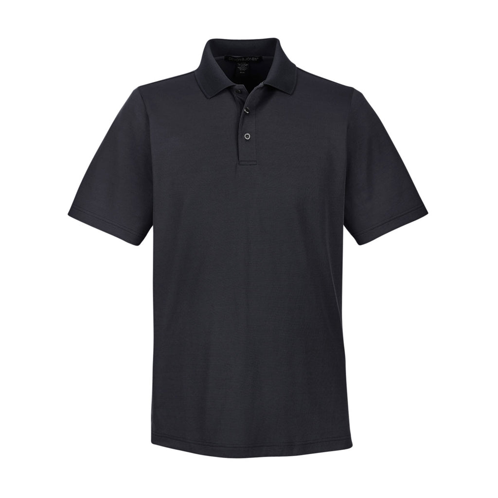 Before the next company golf outing, order the embroidered Devon & Jones Men's Black CrownLux Performance Polo for the male members of your team. The front of the stylish polo contains 100% durable polyester, while the back side enjoys a cotton and polyester blend to enhance comfort. Moisture wicking technology keeps the skin dry and cool throughout every round. The matching flat knit collar will attract the attention of fellow players. Take advantage of the attention by adding a custom logo on the large imprint area. Dyed-to-match buttons exude panache to make the polo your go to corporate apparel for outdoor recreational activities.
