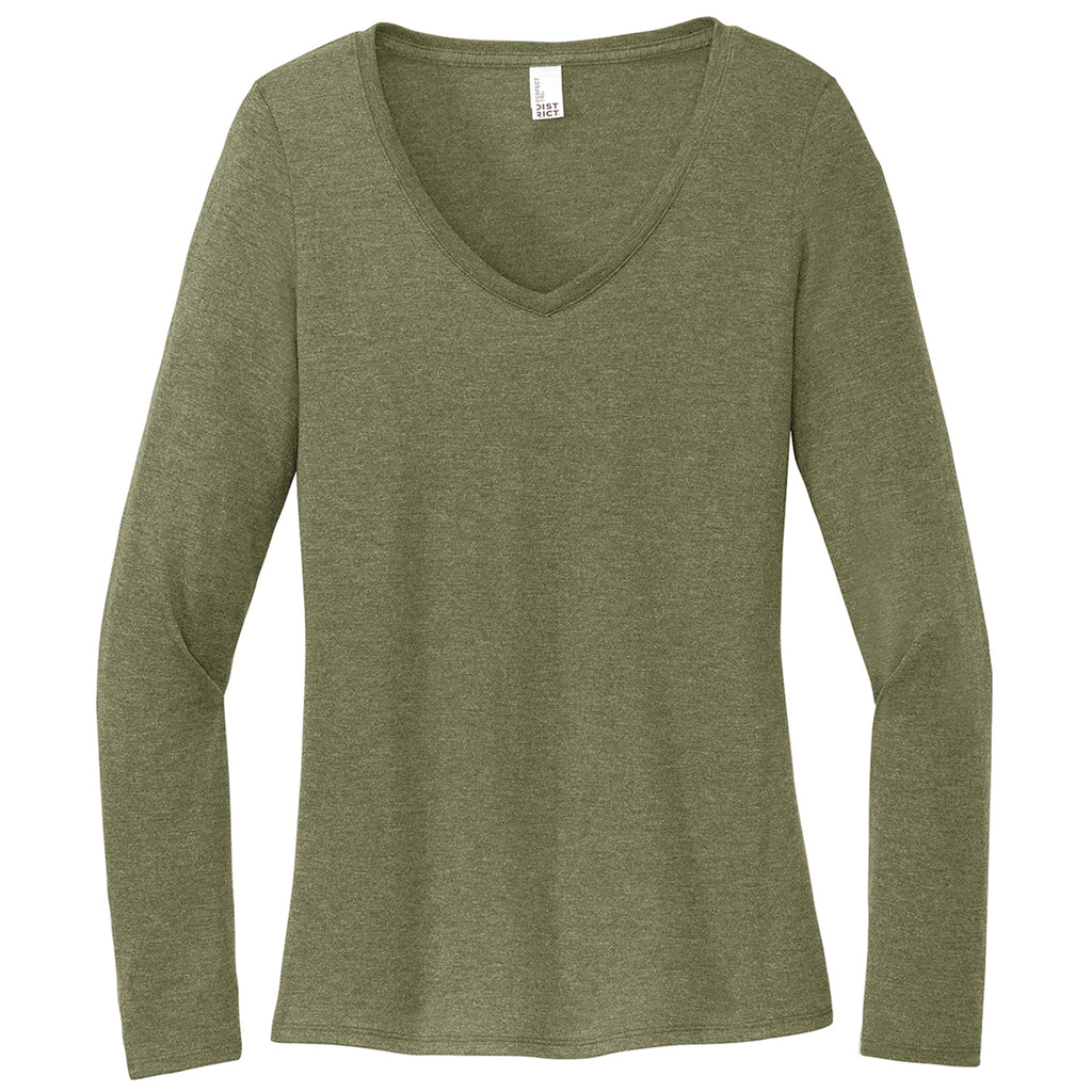 District Women's Military Green Frost Perfect Tri Long Sleeve V-Neck Tee