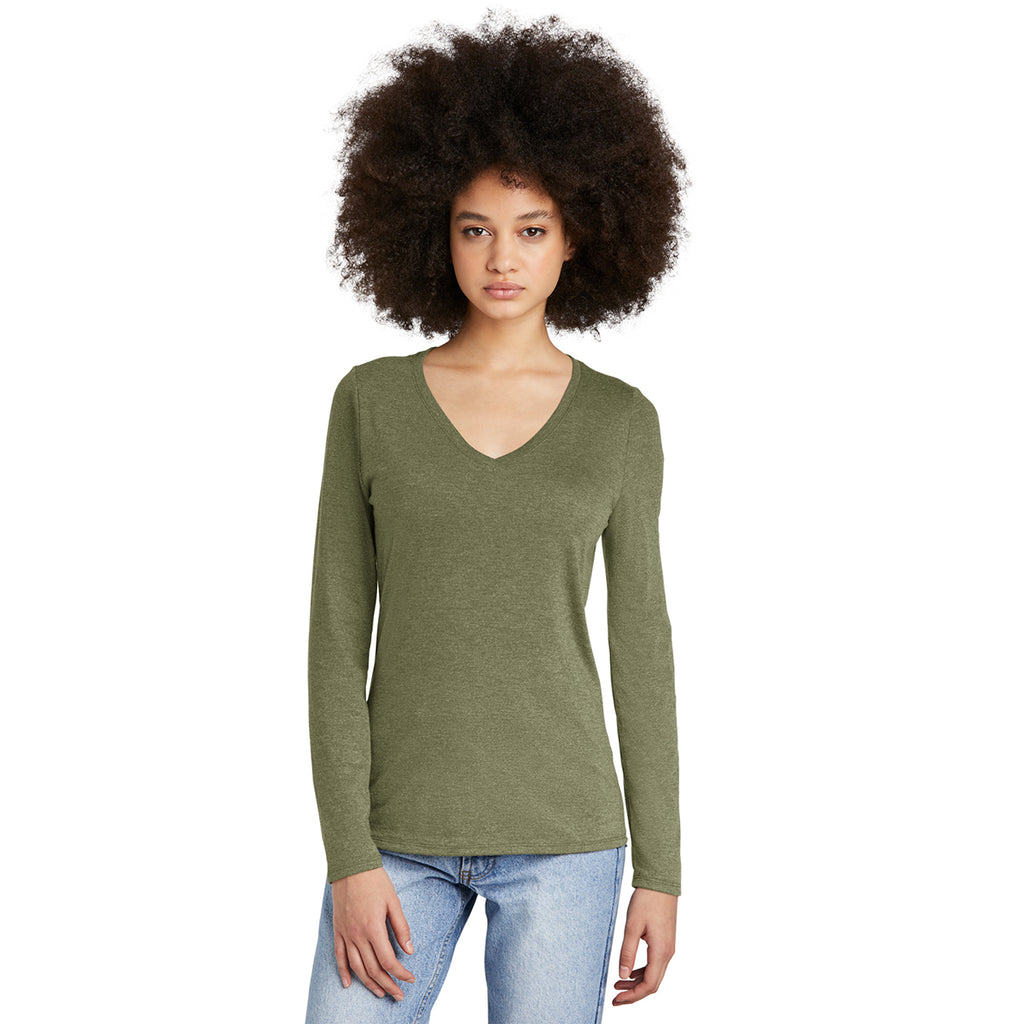The custom District Women's Military Green Frost Perfect Tri Long Sleeve V-Neck Tee is an ideal product on which to add your company logo. When you add your brand logo to this shirt, you have an effortless way to say thank you to your employees as you hand it out as an employee gift.Highlights