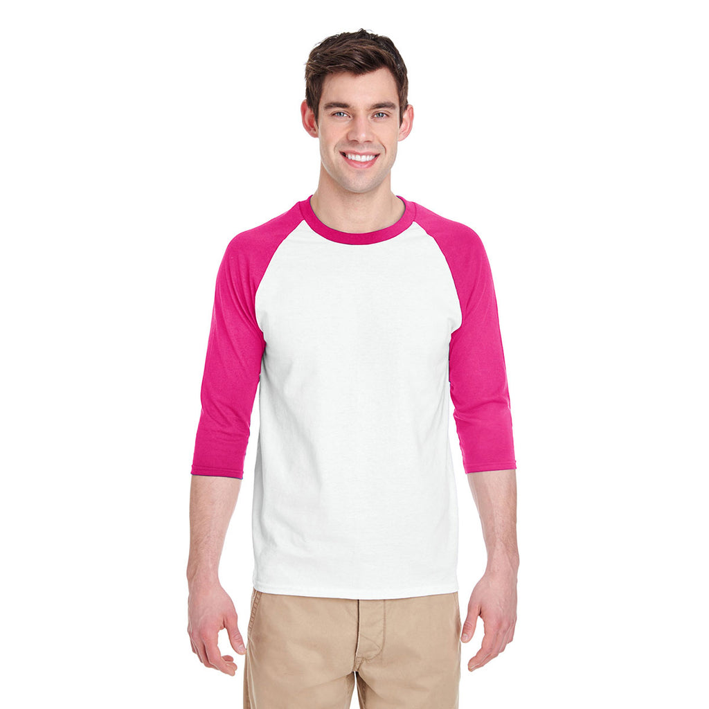 Gildan Unisex White/Heliconia 5.3 oz. 3/4-Raglan Sleeve T-Shirt