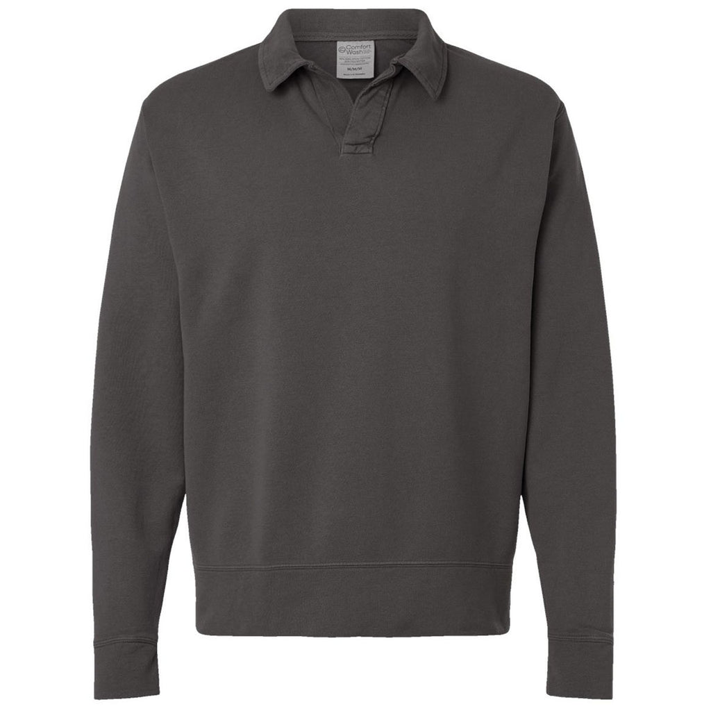 ComfortWash by Hanes Men's New Railroad Grey Garment-Dyed Polo Collar Sweatshirt