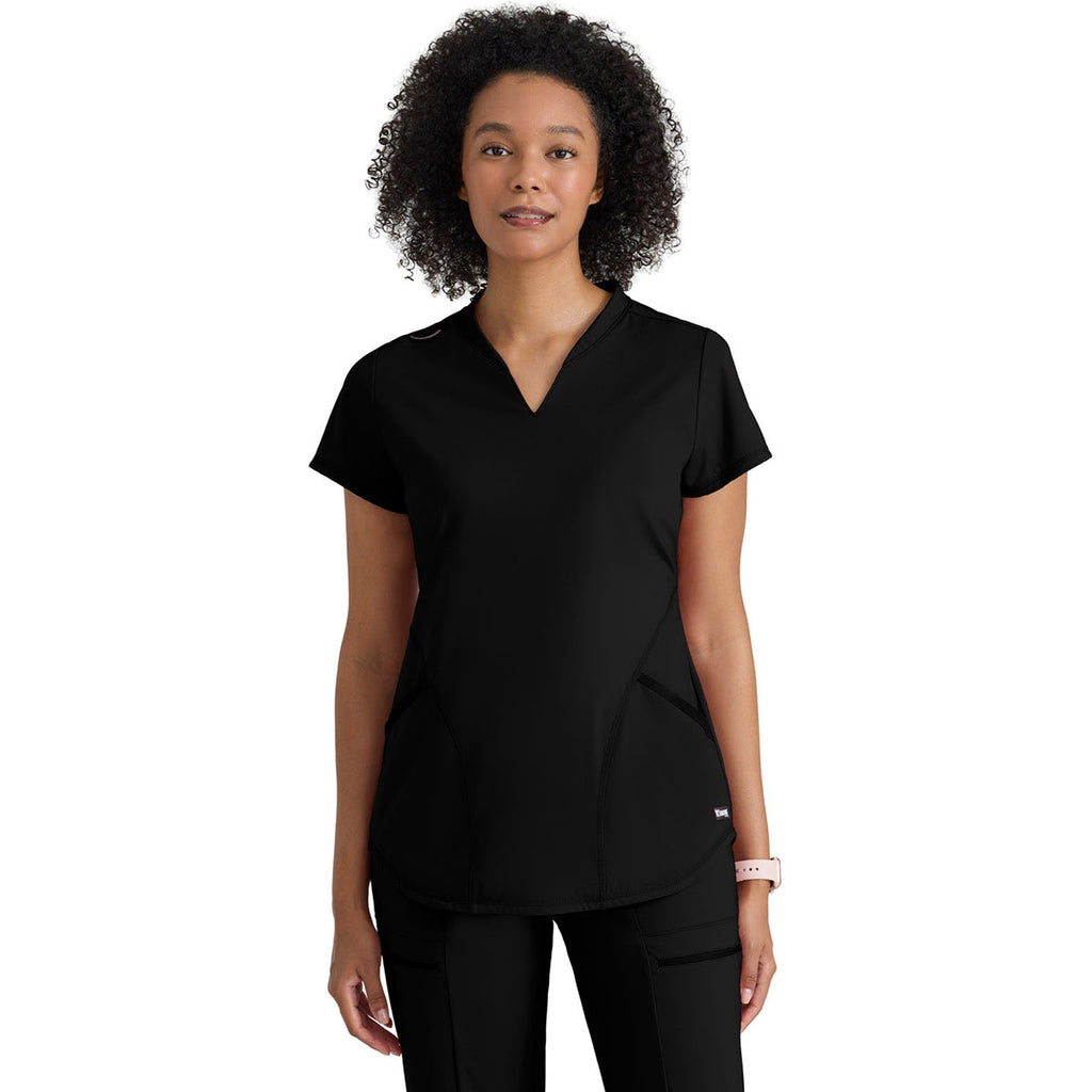 Look amazing in a custom Grey's Anatomy Women's Black Two Pocket V-Neck Define Top that blends style with functionality. The V-notch neckline with cap sleeves is comfortable and durable for all-day wear. With built-in stretch, antimicrobial, and anti-odor protection, this top will stand up to a hard day at work or play.Highlights
