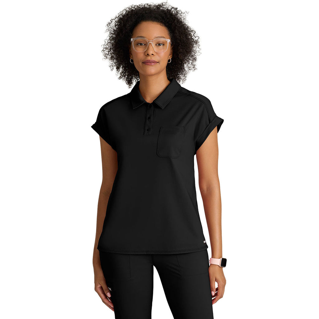 Grey's Anatomy Women's Black One Pocket Polo Neck Renew Top