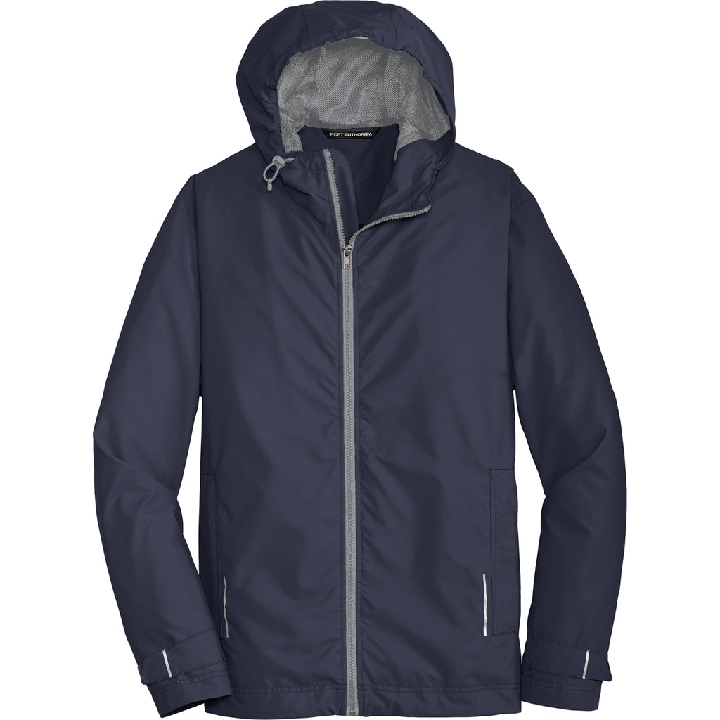 More than just a raincoat, the Port Authority Men's Navy Northwest Slicker repels all types of moisture to keep you dry during the worst weather conditions. The stylish slicker also exudes style to give you the one-two punch of high fashion and incredible functionality. Reflective details make the jacket perfect for joggers and cyclists that like to exercise at night. The corrosion resistant Vislon zipper always moves up and down the jacket flawlessly. Style elements include an open hem and adjustable drawcord. Add your corporate logo to the large imprint area to get the word out about your company.Corresponding Women's Style: Port Authority Women's Navy Northwest Slicker