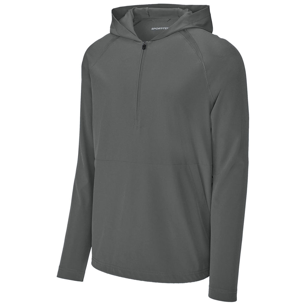 Enjoy a custom look with the Sport-Tek Men's Iron Grey Repeat 1/2-Zip Long Sleeve Hooded Jacket. This pullover 1/2-Zip is snag resistant making it great as part of team gear or warm-up wear. An attached hood and adjustable hem create a custom fit whether hiking, biking or just enjoying the Great Outdoors.Highlights