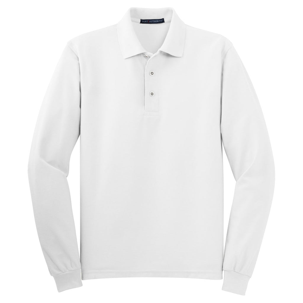 Port Authority Men's White Long Sleeve Silk Touch Polo