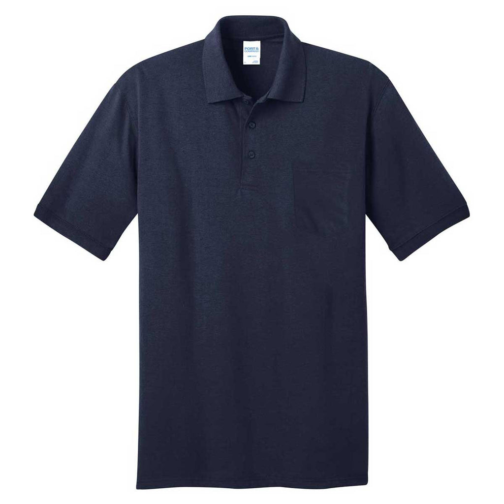 Inspired by minimalist architecture, this Port & Company Men's Deep Navy Core Blend Jersey Knit Pocket Polo is a great answer to warm-weather uniforming shirts. It boasts a lightweight and comfortable construction with a balanced cotton-polyester blend. A pocket adds character to this casual polo while a 3-button placket ensures comfort fit. It can be easily paired with contrasting chinos, cargoes or denim for an effortless look and style. Double-needle stitching hem means durability. Spruce up your company's professionalism by having your logo on this polo that lets individuals know who to contact if they're interested in reaching out to your business.Highlights