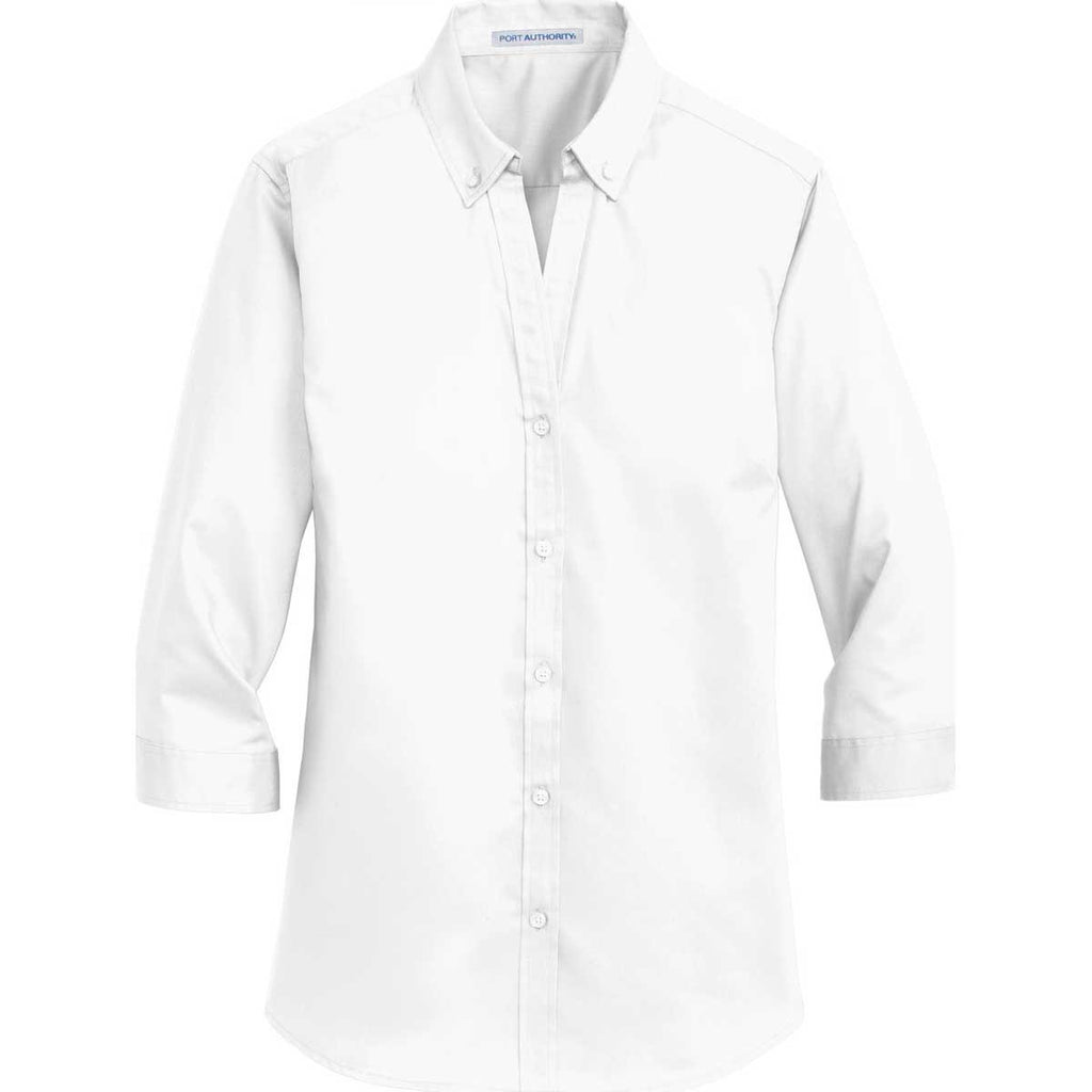 Port Authority Women's White 3/4-Sleeve SuperPro Twill Shirt