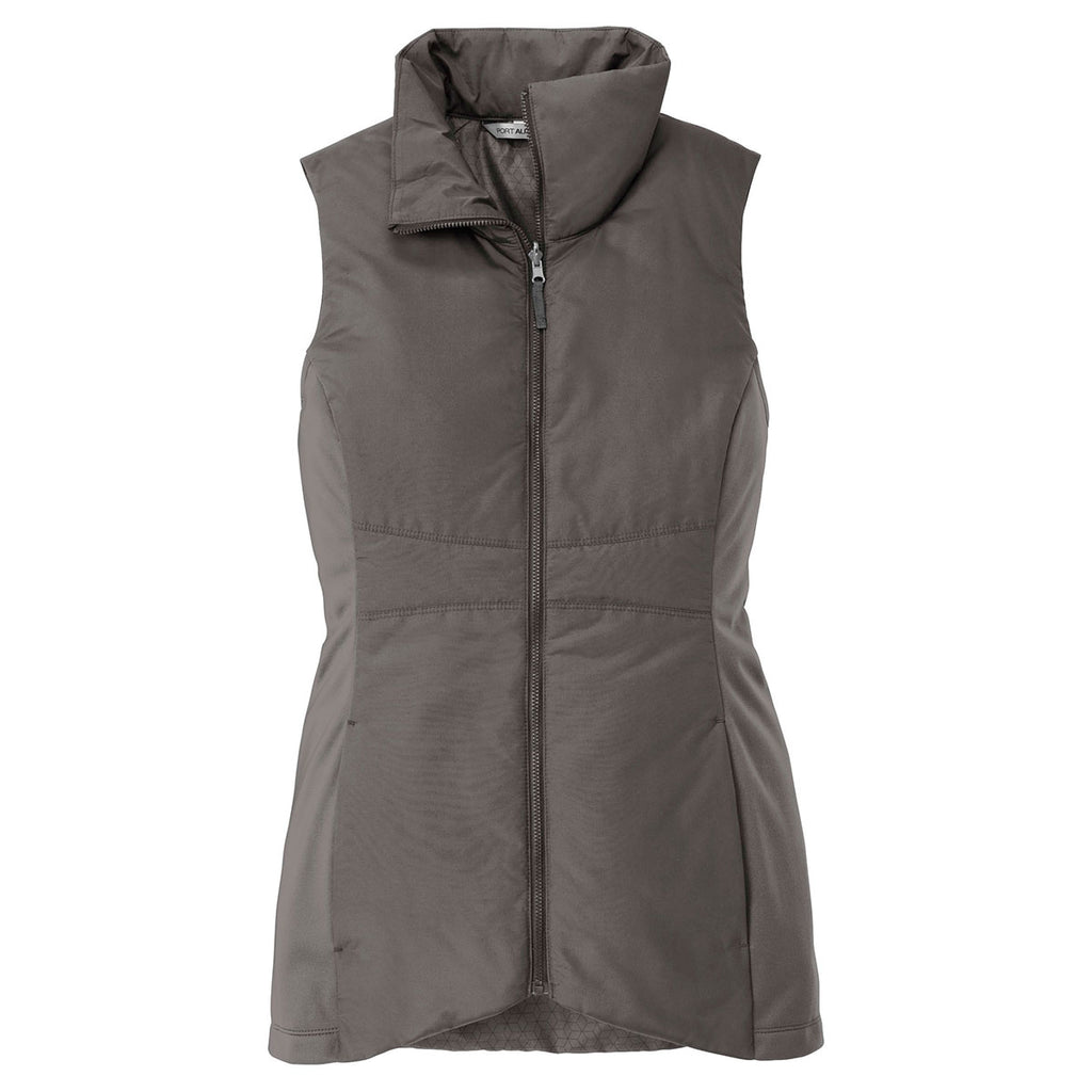 Change the way your team views winter apparel by ordering the custom logoed Port Authority Women's Graphite Collective Insulated Vest. The 100% polyester woven shell resists the types of rips and tears that end the product lives of other styles of winter vests. Water resistant film insert prevents moisture from dampening a day of fun activities outdoors. Micro fleece lining at the side panels and under the arms ensures every inch of the jacket offers protection against colder temperatures. Attach your company logo on the large imprint area to spread the word about your brand.Corresponding Men's Style: Port Authority Men's Graphite Collective Insulated Vest