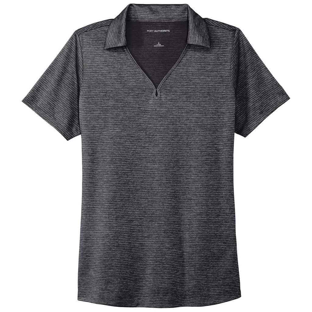 Port Authority Women's Deep Black Shadow Stripe Polo