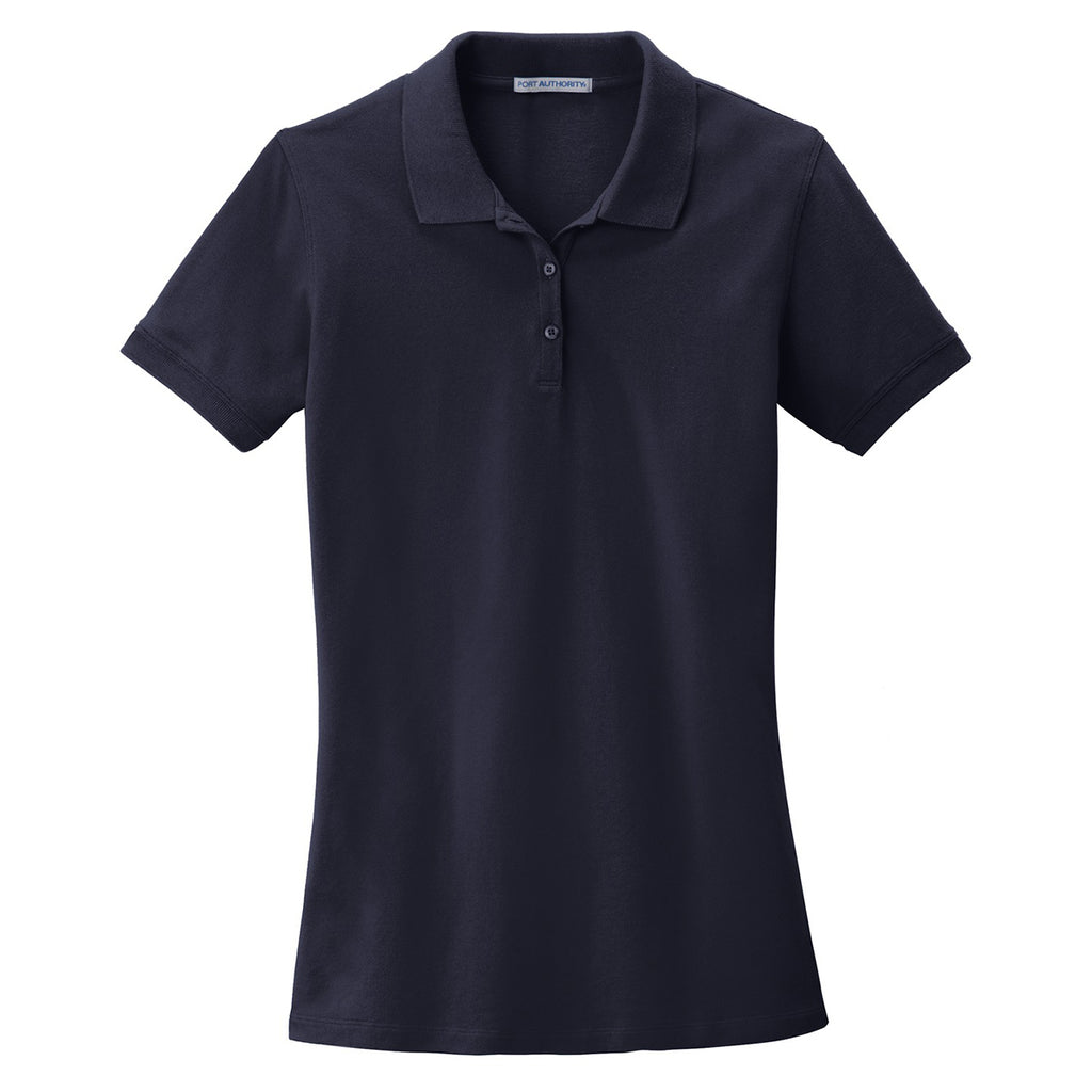 No one said the embroidered Port Authority Women's Navy Ezcotton Polo was easy to make. The result of the meticulously designed polo is a soft and smooth fabric that contains 100% cotton pique material to keep you comfortable throughout the day. Wear the multi-purpose polo to a trade show and keep it on after the event at a corporate cocktail party. Side vents circulate air to cool the body and dyed-to-match buttons create a stunning appearance that is the fashion hit of the next civic event. Add a custom logo to the large imprint area to generate buzz for your company everywhere you go.Corresponding Men's Style: Port Authority Men's Navy Ezcotton Polo