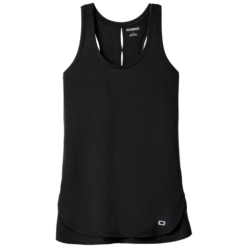 With a drape that allows for easy body movements, the custom logoed OGIO Women's Blacktop Luuma Tank offers the ultimate in fashion versatility. Wear the tank as an only garment during summer and layer it under a pullover and winter jacket when Old Man Winter arrives. Side vents and the self-fabric neck and armholes create an innovative design that will gain the attention of professional peers at networking events. Display the company logo screen printed on the tank to attract potential customers to your products and services. Moisture wicking technology delivers optimal all-day comfort.