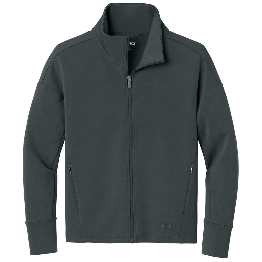 Add a custom logo to the OGIO Women's Tarmac Grey Transcend Full-Zip to create a look that falls between work and leisure. The polished, elevated full-zip has a shawl collar and drop shoulders with blousing details at the sleeves. Ideal for a day with family, running errands, or an upscale casual event.This product can only ship within the United States, Puerto Rico, Canada, and Mexico.