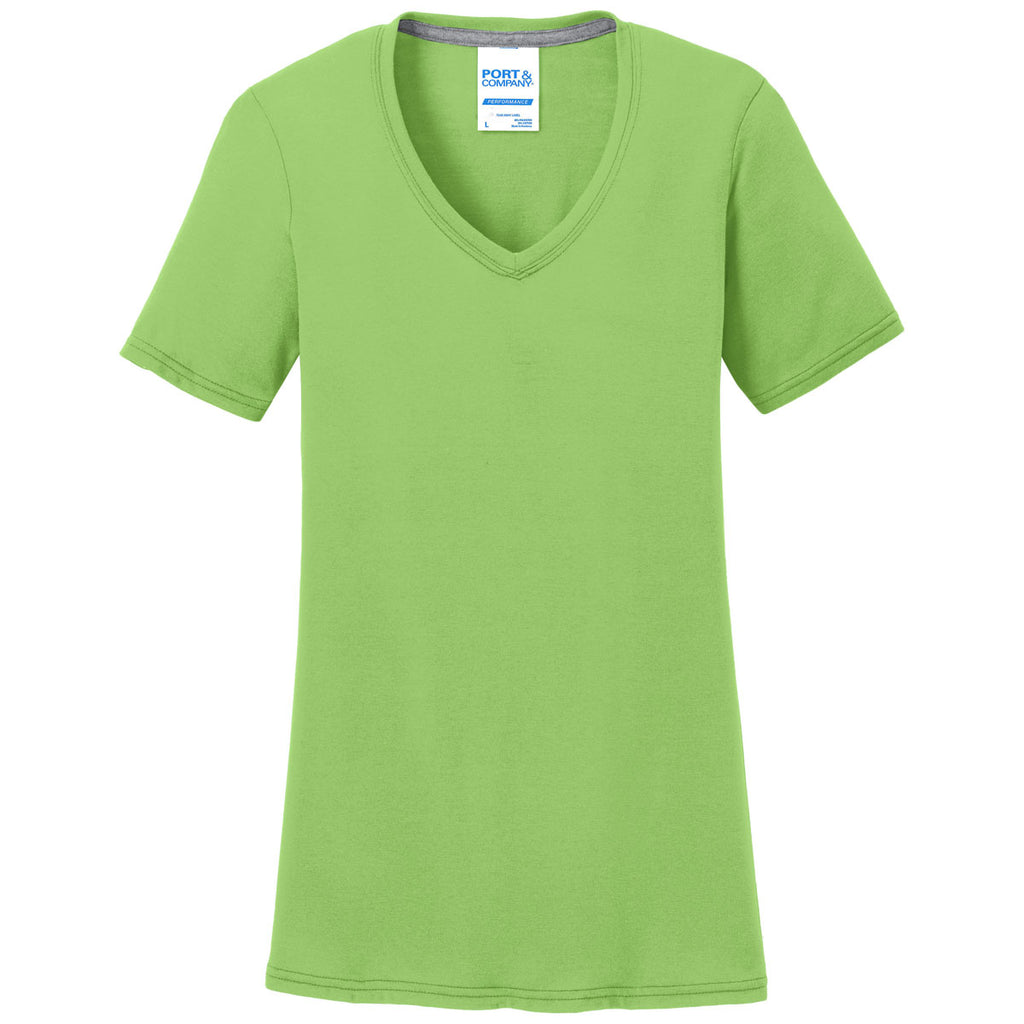 Port & Company Women's Lime Performance Blend V-Neck TeeCorresponding Men's Style: Port & Company Men's Lime Performance Blend Tee
