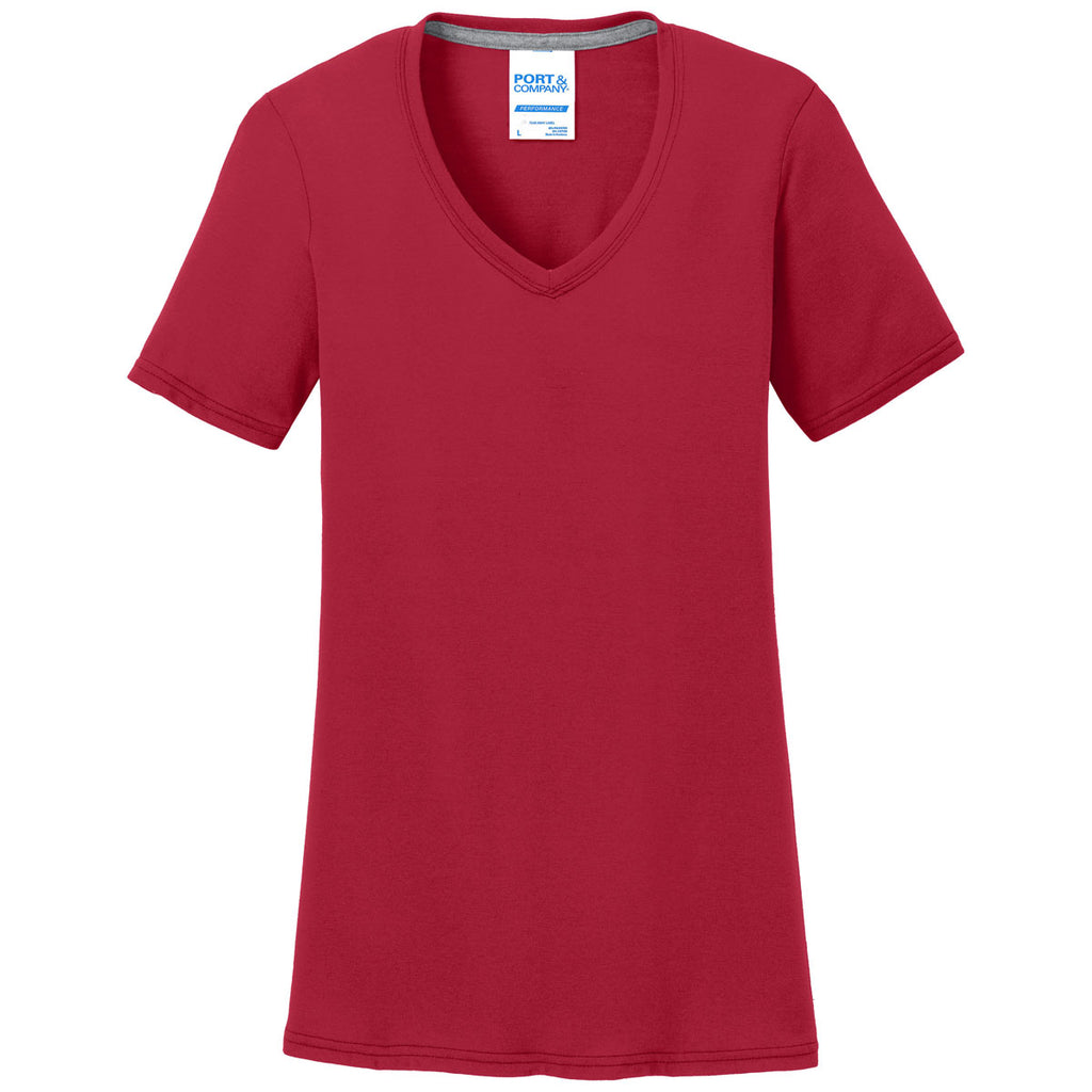 Port & Company Women's Red Performance Blend V-Neck Tee