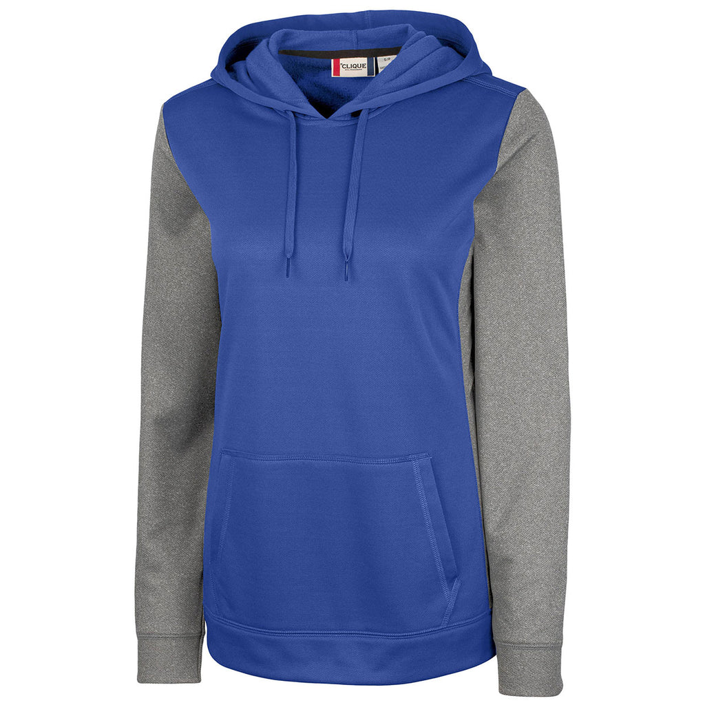 The Clique Women's Royal Blue Helsa Sport Colorblock Pulloveroffers stylish comfort that can have a custom logo added to the front. Choose from unique color options and enjoy product features including a 100% polyester fleece material, attached hood with drawstring, long sleeve cuffs in heather fabric, and a kangaroo pocket. This pullover sweatshirt makes an ideal corporate apparel gift to hand out at golf events or trade shows. You can even purchase some for your employees and hand these out as employee apparel.Corresponding Men's Style:Clique Men's Royal Blue Helsa Sport Colorblock Pullover