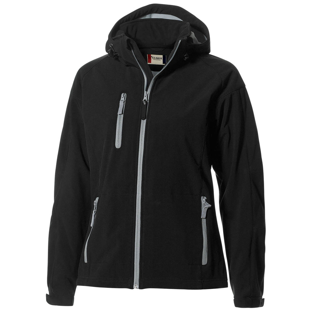 With a water resistant fabric, the custom logoed Clique Women's Black Tulsa Jacket keeps you dry during a corporate sponsored golf tournament. Breathable to prevent the buildup of moisture, the versatile full zip jacket makes the ideal outer garment for weathering rainy camping trips. Attach your company logo to turn the stylish jacket into an embroidery marvel. With a custom logo, you increase recognition for your brand at industry trade shows. Adjustable Velcro cuffs give you more room to move your arms and hands to complete strenuous home improvement projects, as well as add more wood on a campfire.Corresponding Men's Style: Clique Men's Black Tulsa Full Zip Jacket