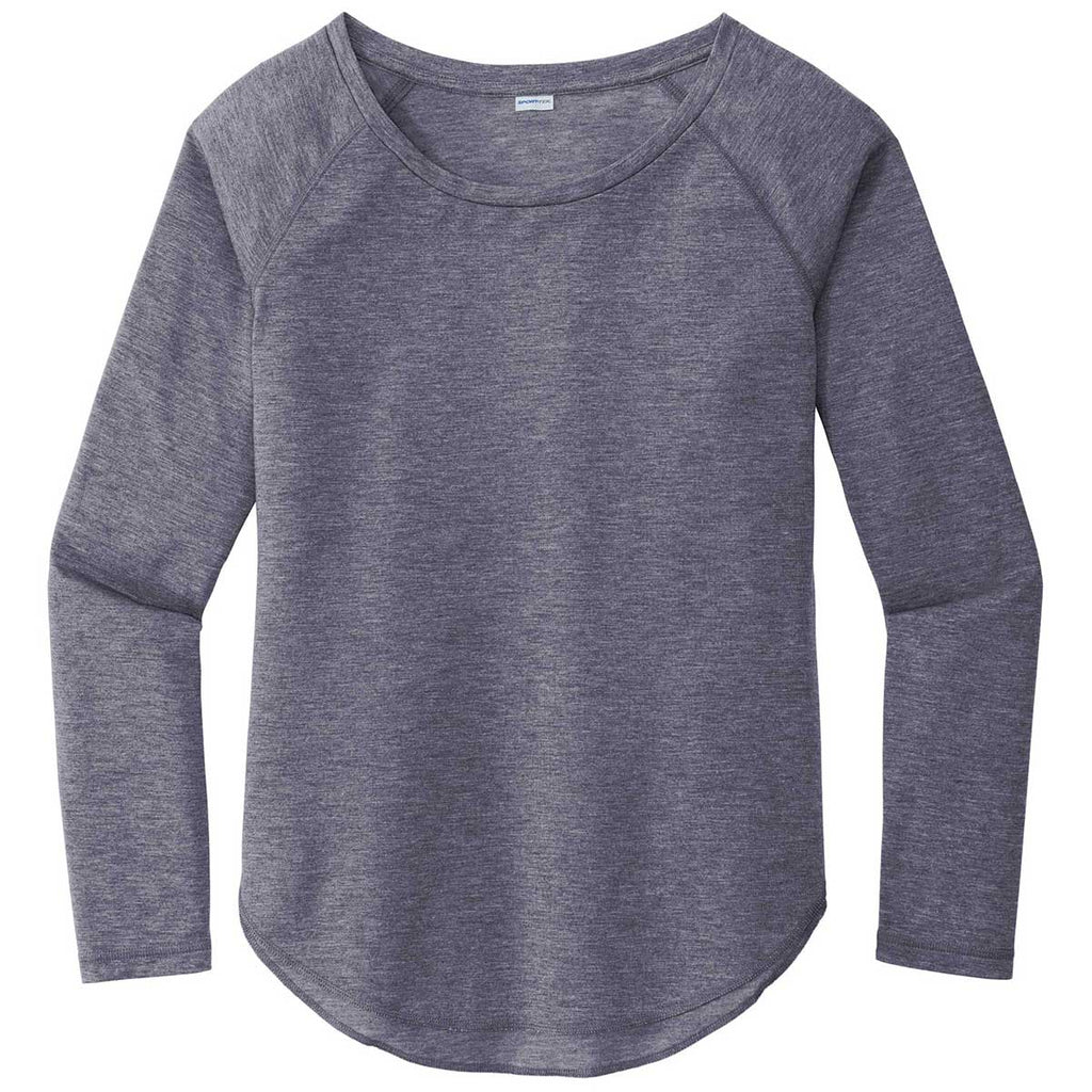 Sport-Tek Women's True Navy Heather PosiCharge Long Sleeve Tri-Blend Wicking Scoop Neck Raglan Tee