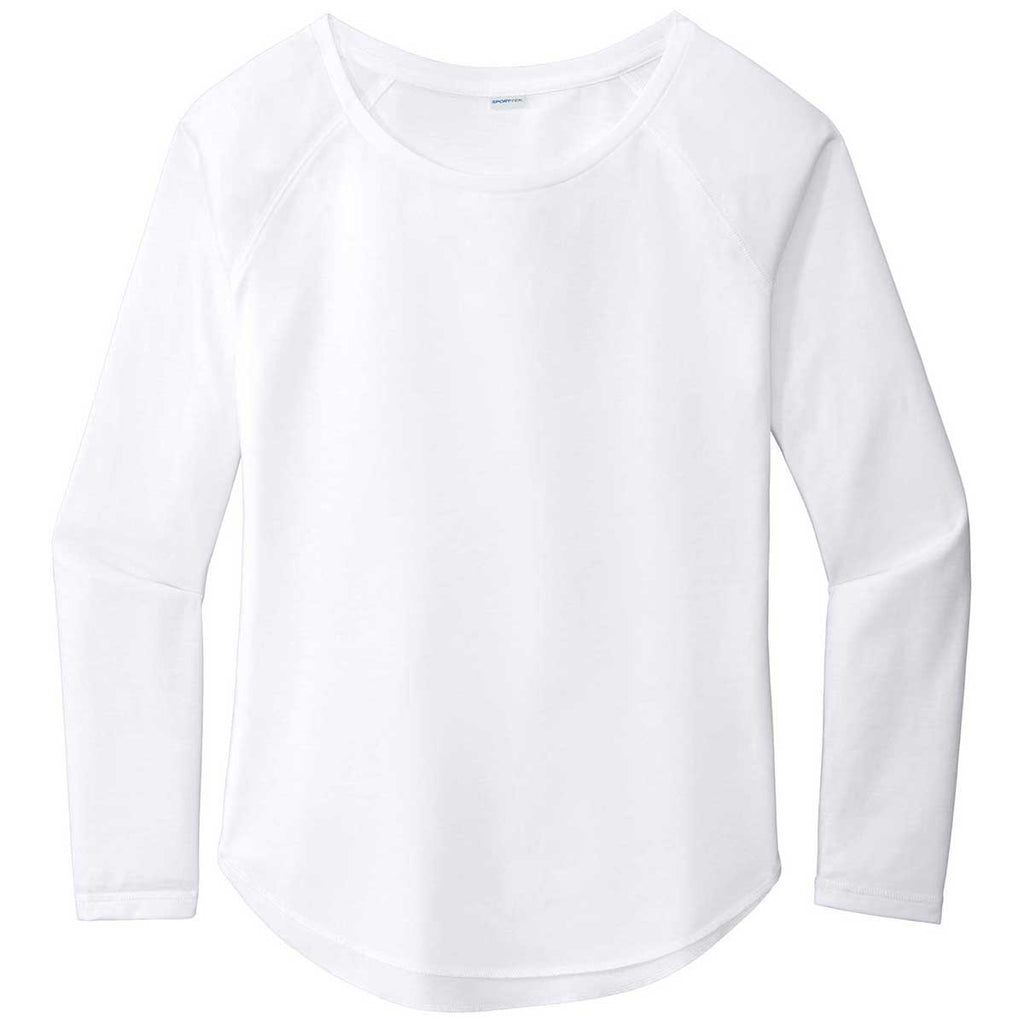 Sport-Tek Women's White Triad Solid PosiCharge Long Sleeve Tri-Blend Wicking Scoop Neck Raglan Tee