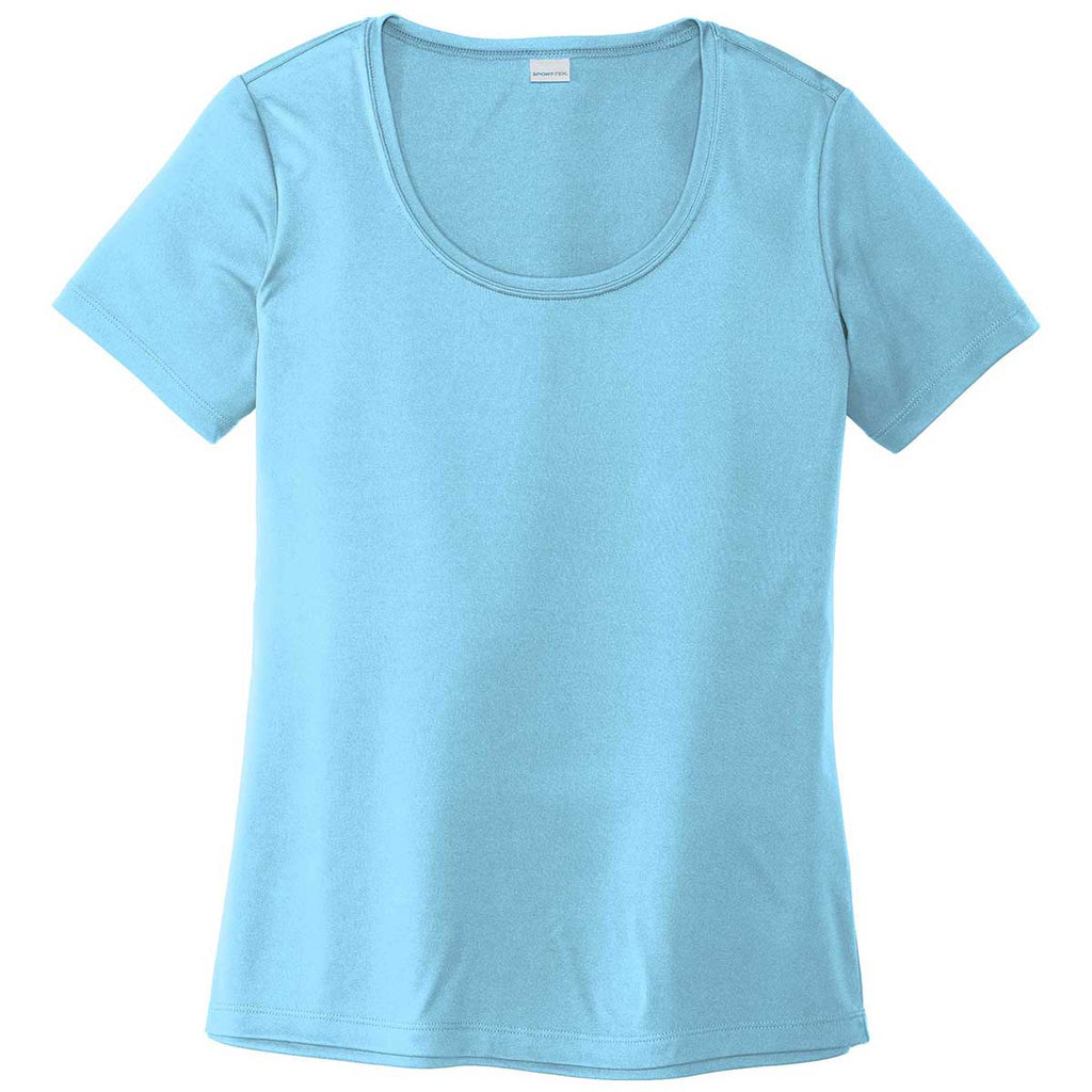 A simple tee is highly versatile and the Sport-Tek Women's Light Blue Posi-UV Pro Scoop Neck Tee is no exception. Whether wearing alone or as part of a layered look, this 100% polyester interlock tee offers PosiCharge technology and exceptional UV rating. Add a custom screen print to use these tees as a uniform for team events or a company uniform for those that need to be highly recognizable. An ideal end of the year gift for all employees or as a gift for meeting a sales goal. This must have tee will fit into nearly every wardrobe and is comfortable enough to wear again and again. Place an order today to have these on hand as gifts, incentives, or uniforms.Corresponding Men's Style:Sport-Tek Men's Light Blue Posi-UV Pro Tee