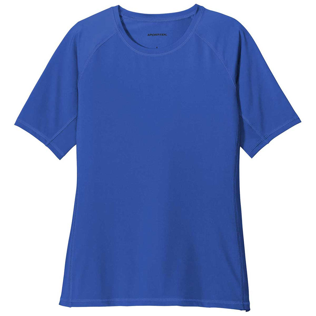Show off your diving skills with a custom logo Sport-Tek Women's True Royal Short Sleeve Rashguard Tee. The wearer will be protected from the sun in this trim, comfortable fitting tee with raglan sleeves and underarm gussets that has a rating of UPF 50. Perfect for days spent surfing or at team events in which water is involved. Add a corporate logo for sponsors or a company logo to use these as company uniforms when the situation calls for such. The PosiCharge technology keeps the heat transfer logo from fading as quickly on this poly and spandex stretch jersey blend.Corresponding Men's Style: Sport-Tek Men's True Royal Short Sleeve Rashguard Tee