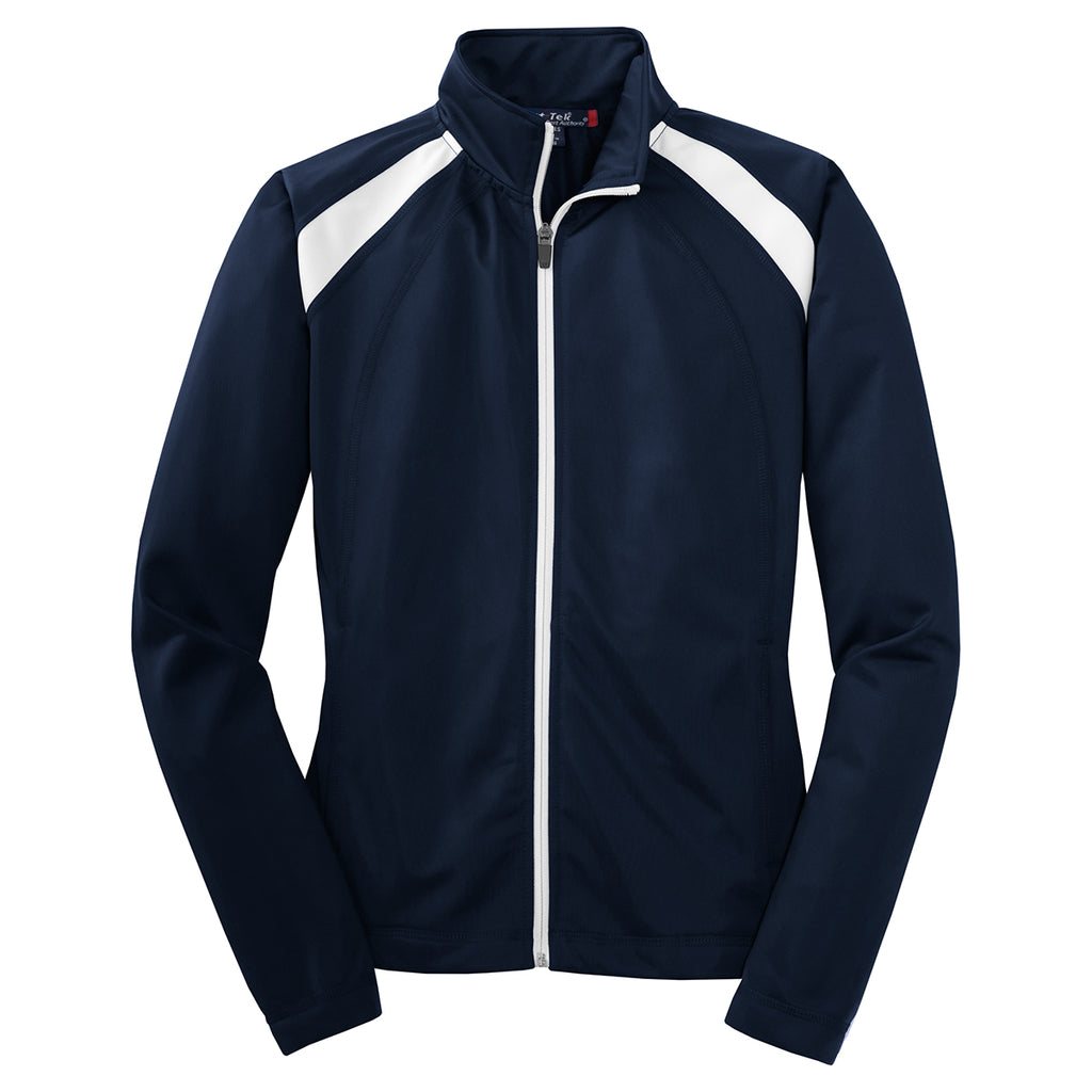 When the weather gets tough, so must you. That's the idea behind this Sport-Tek Women's True Navy/White Tricot Track Jacket. Add your own custom embroidery to make this a piece of corporate apparel that anyone can enjoy. Layering is ideally suited to serve as your canvas, and this is an item that will work for you in the elements, not against.Corresponding Men's Style:Sport-Tek Men's True Navy/White Tricot Track Jacket