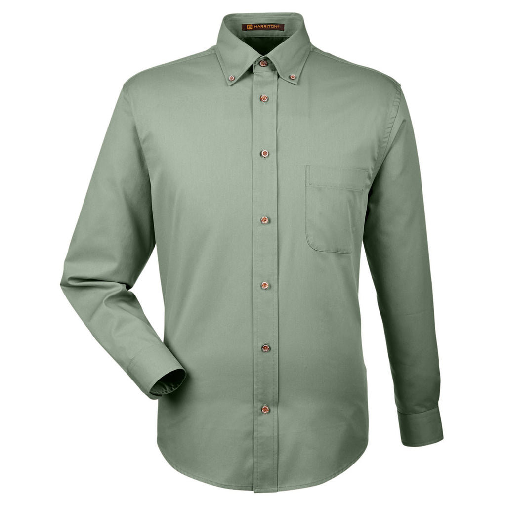 Harriton Men's Dill Easy Blend Long-Sleeve Twill Shirt with Stain-Release
